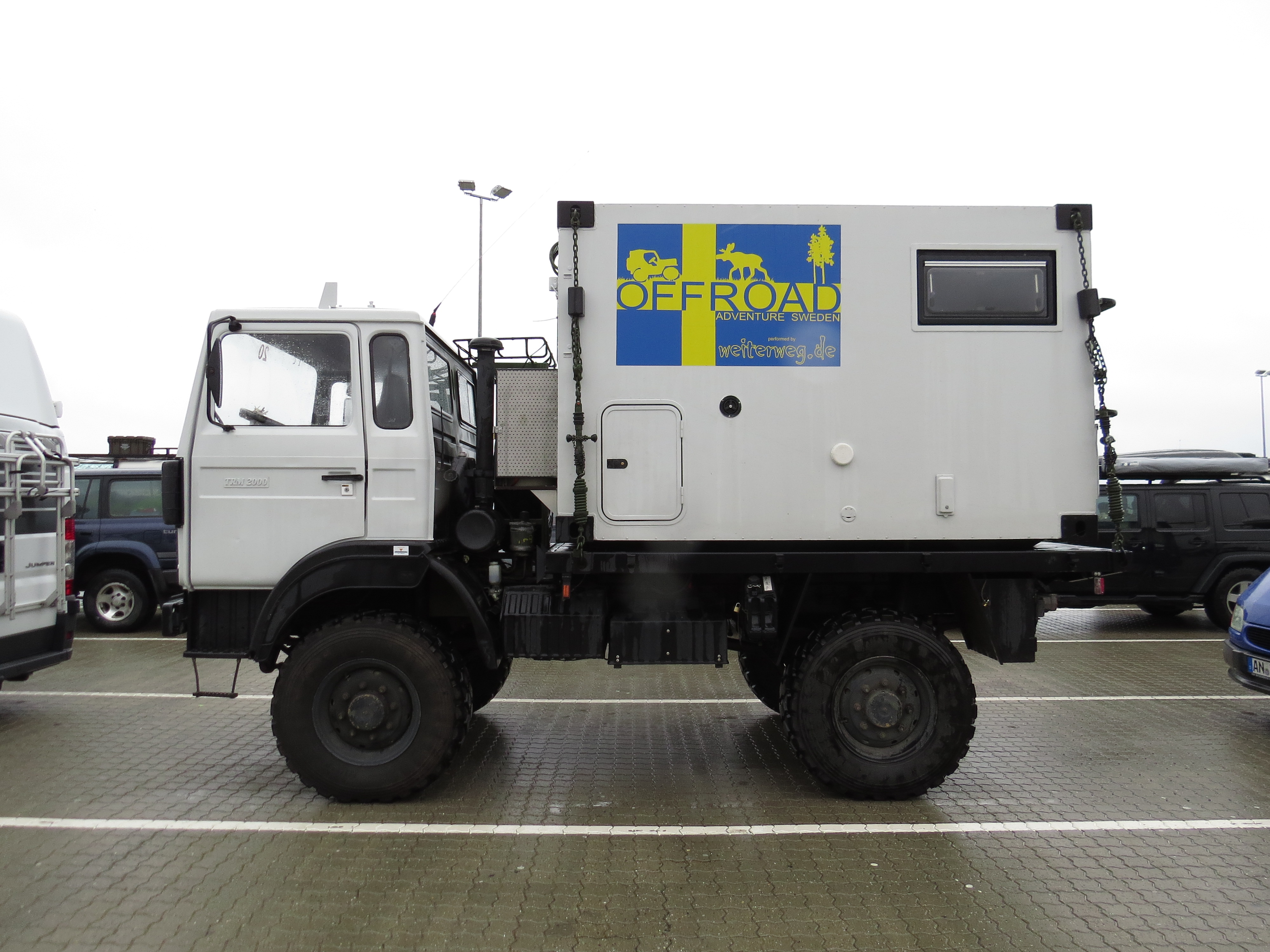 Il y ceux qui n'ont pas confiance .... Et quelques véhicules collectors Pour informations, sur le bateau, il est possible de réduire le coût des repas en montant à bord avec un glacière électrique. Les repas sont hors de prix. On peut aussi voyager en dortoir plutôt quand cabine, mais à 4 personnes la différence n'est pas assez significative par rapport au coût total.
