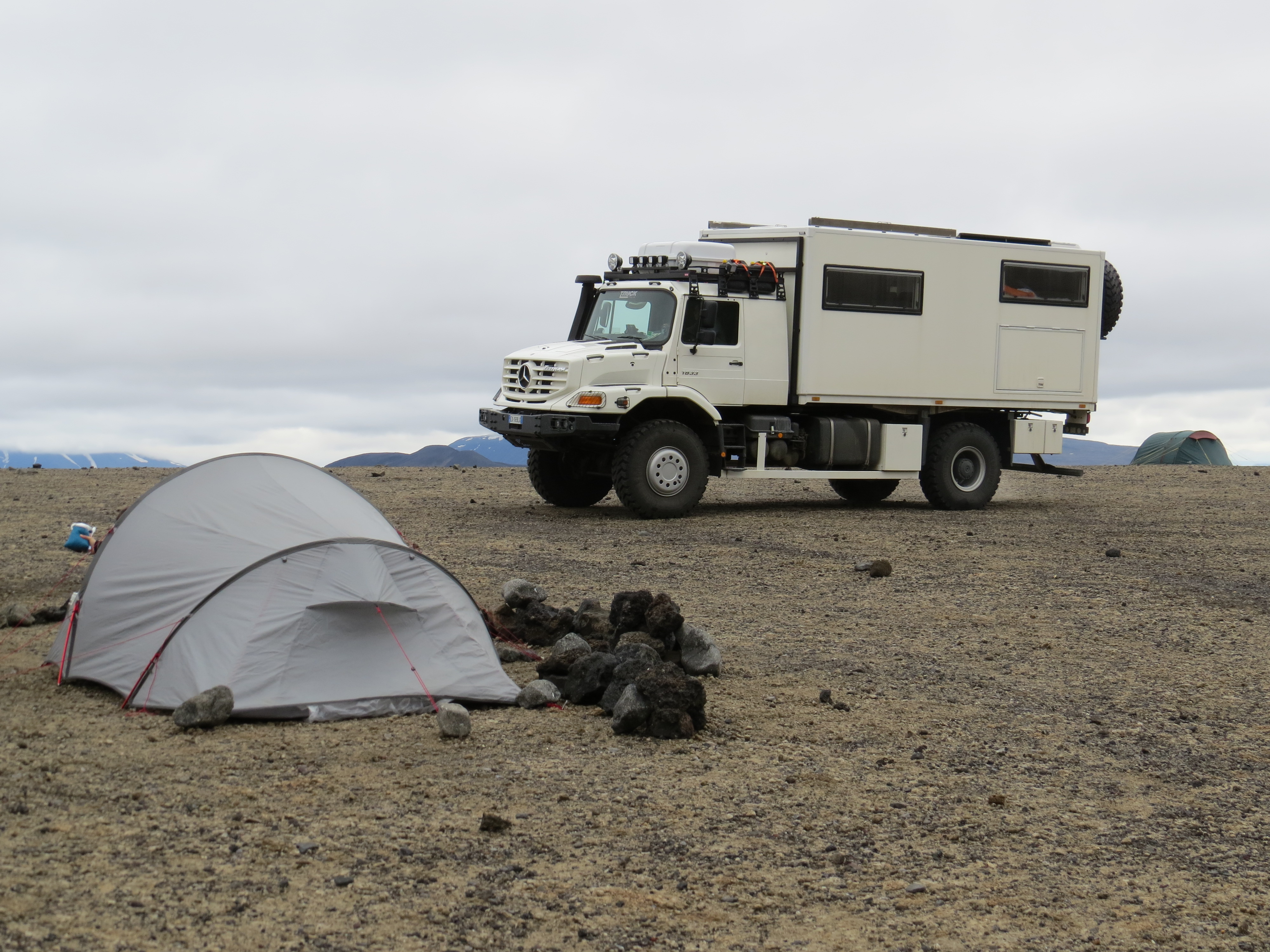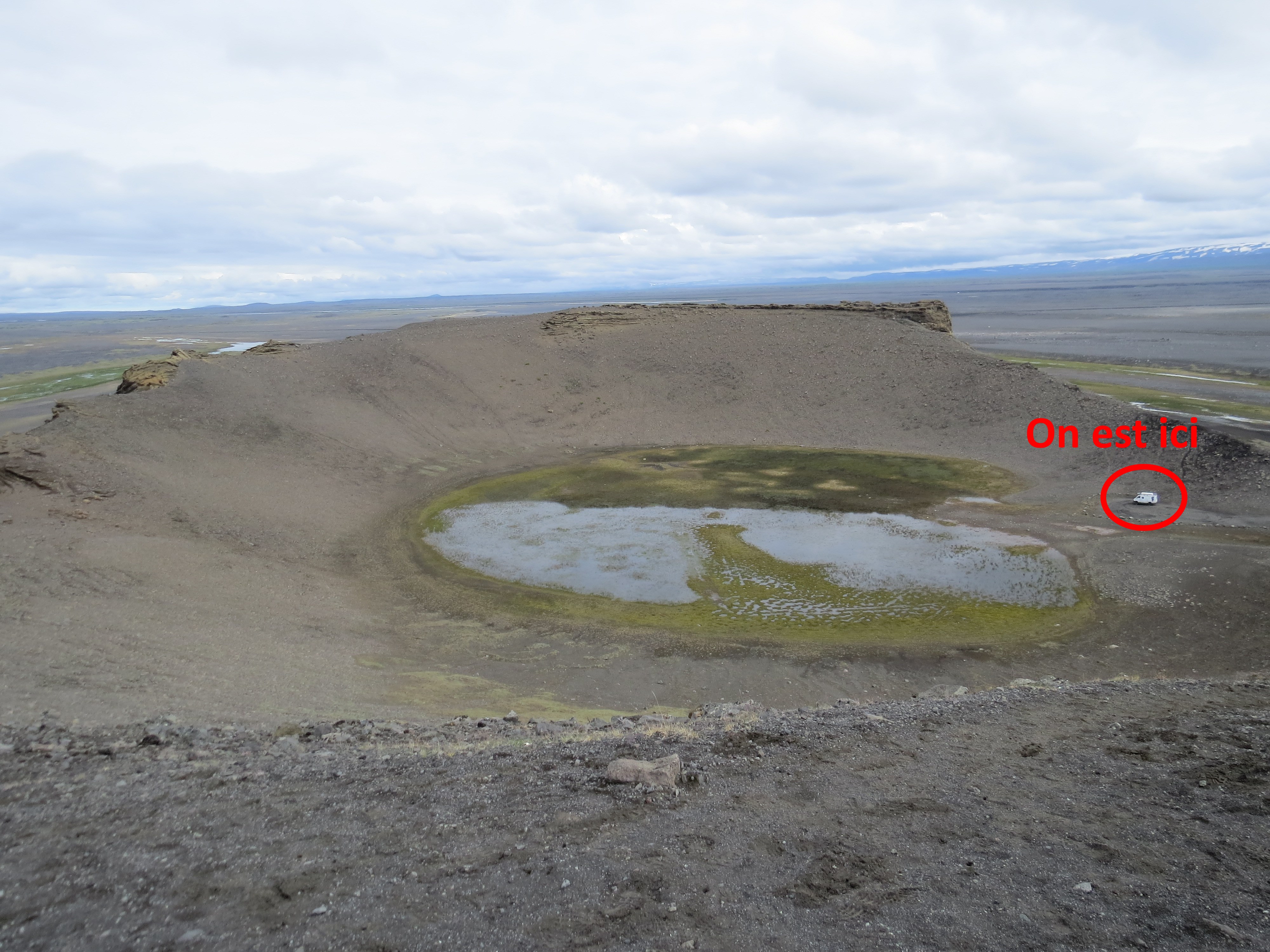 Pour info, les américains ont testé le Rover lunaire dans cette zone avant d'embarqué dans Apollo. On s’arrête juste avant la fin de la piste pour passer la nuit dans le cratère de l'ancien volcan Hrossaborg Temps: Beau le matin - Orage en début d'aprés midi - Couvert en fin de journée