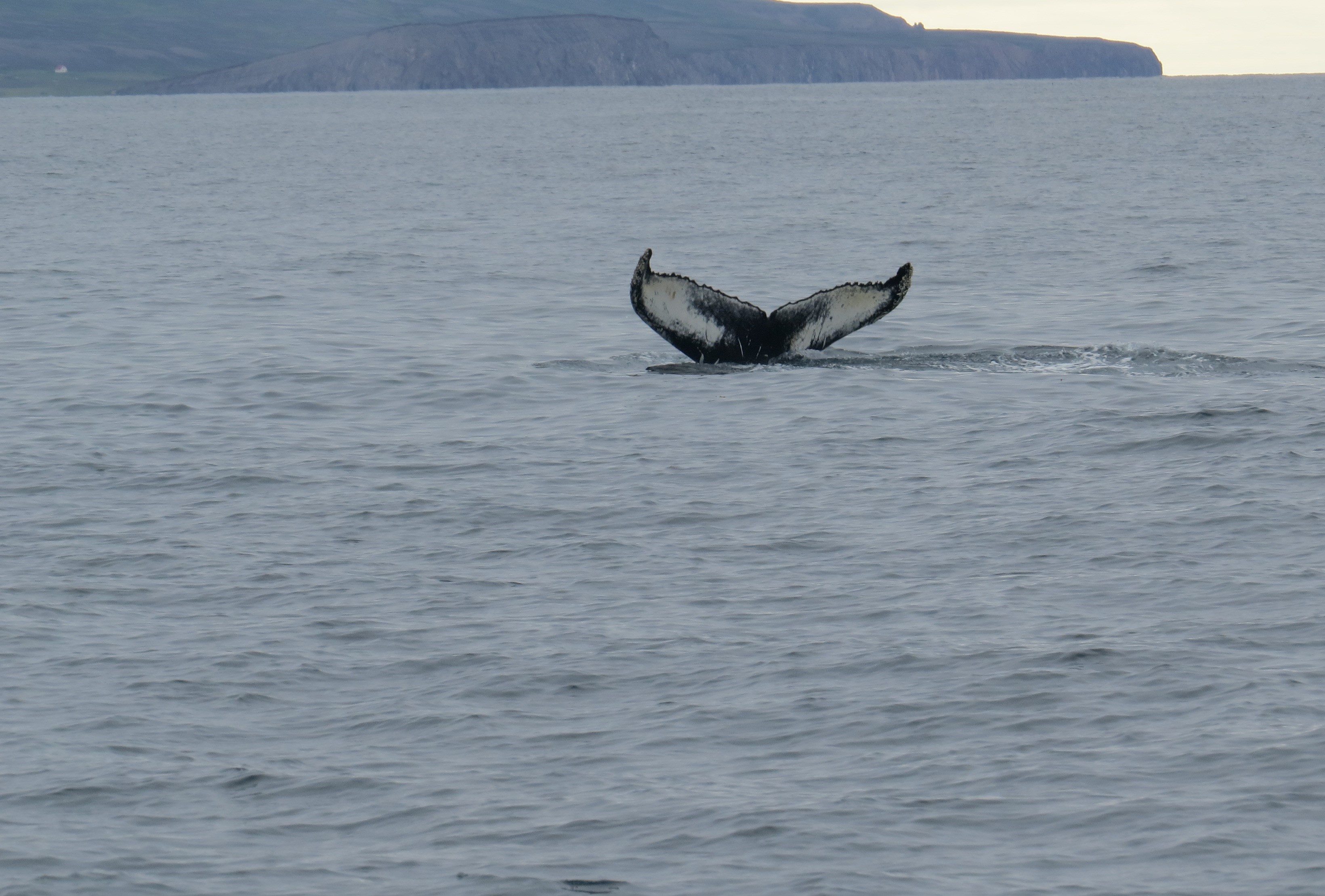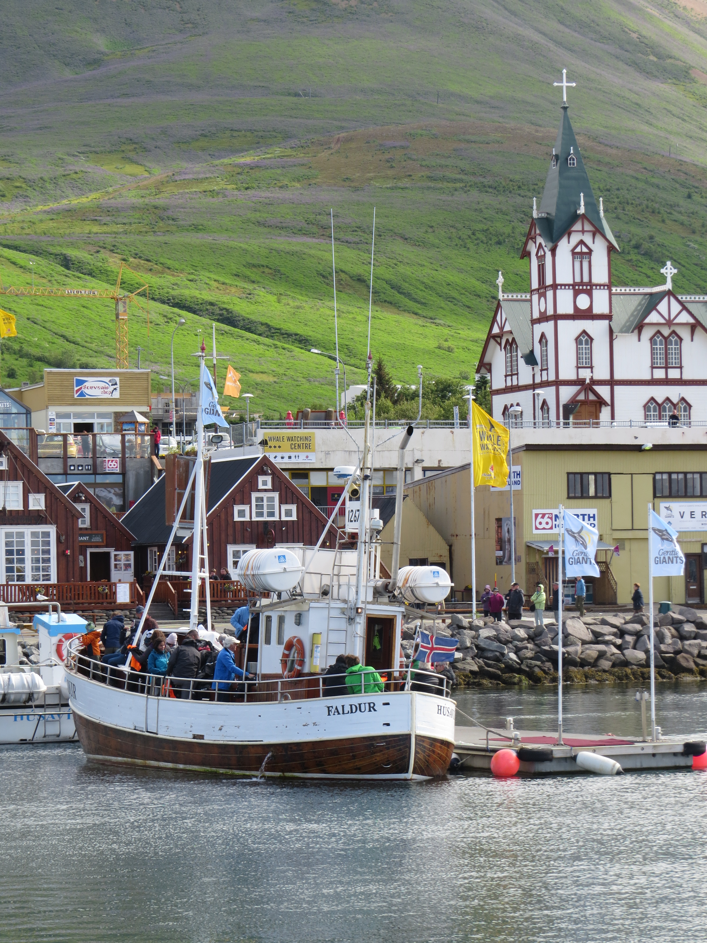 Habillé comme des marins du grand Nord, on part voir les baleines. C'est les enfants qui sont heureux. Sur le retour, la bateau tombe en panne, plus de pression d'huile, on est obligé de se faire remorqué pour renter au port.