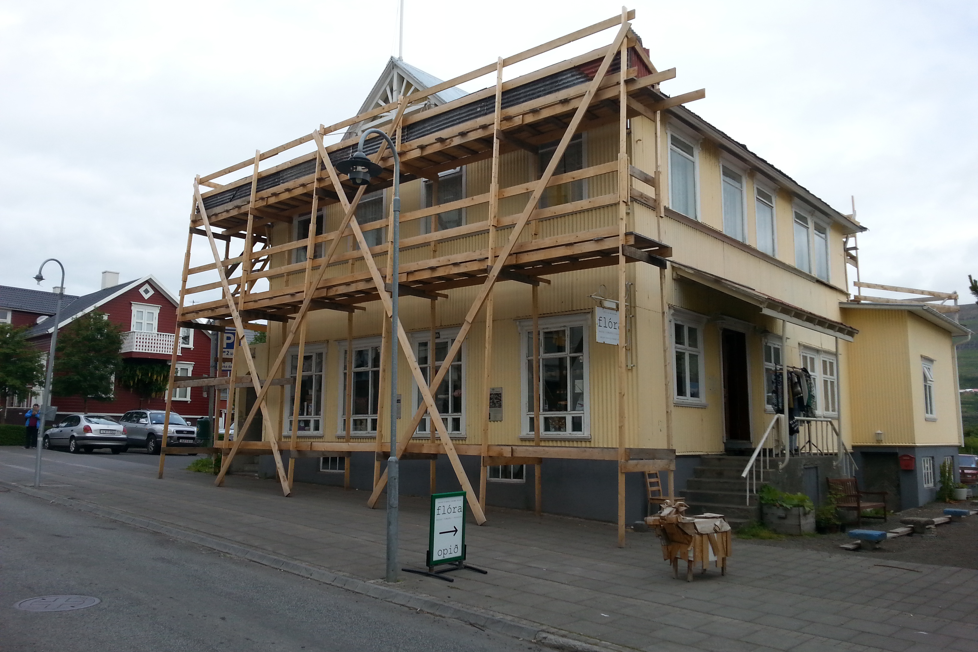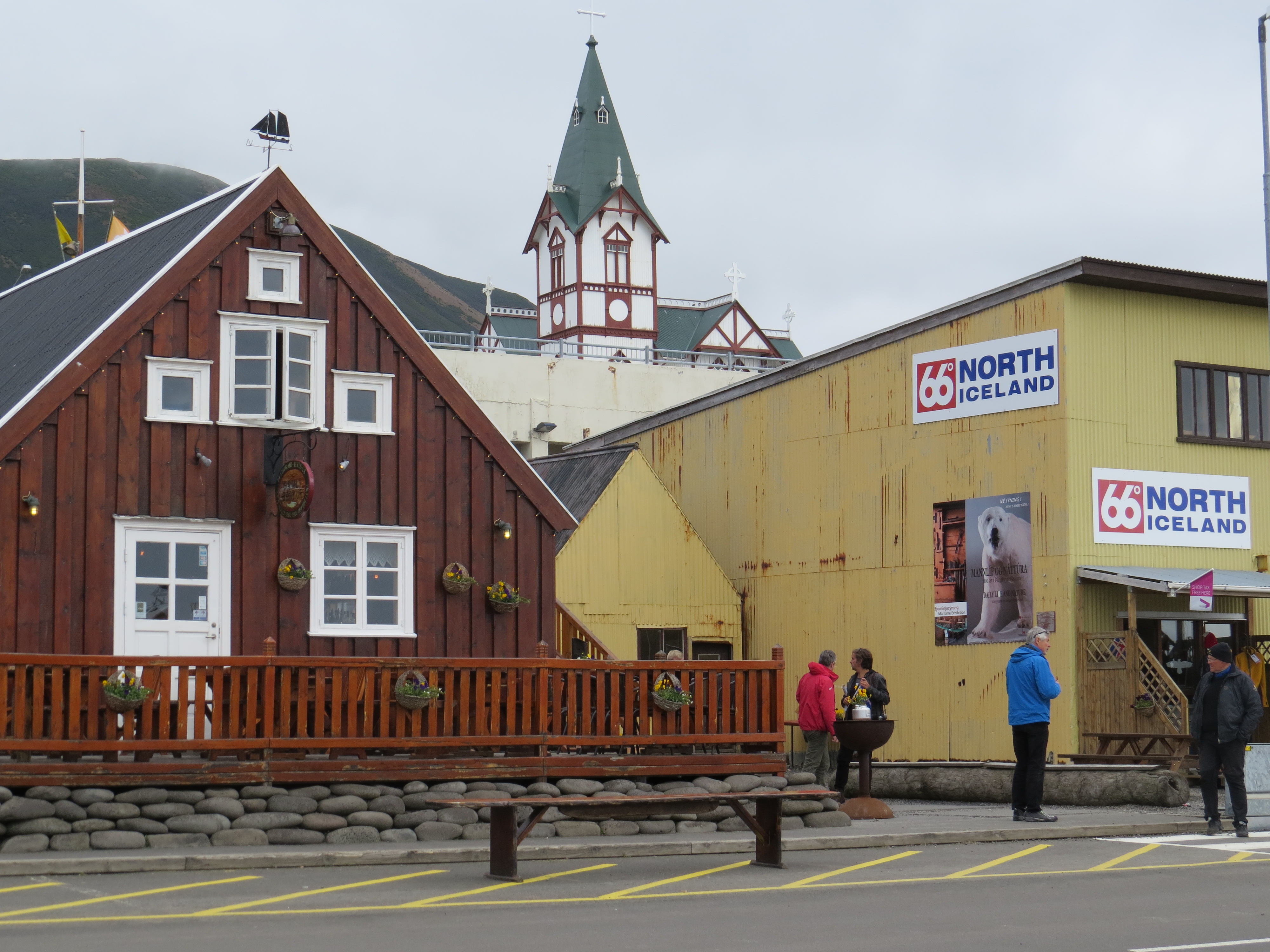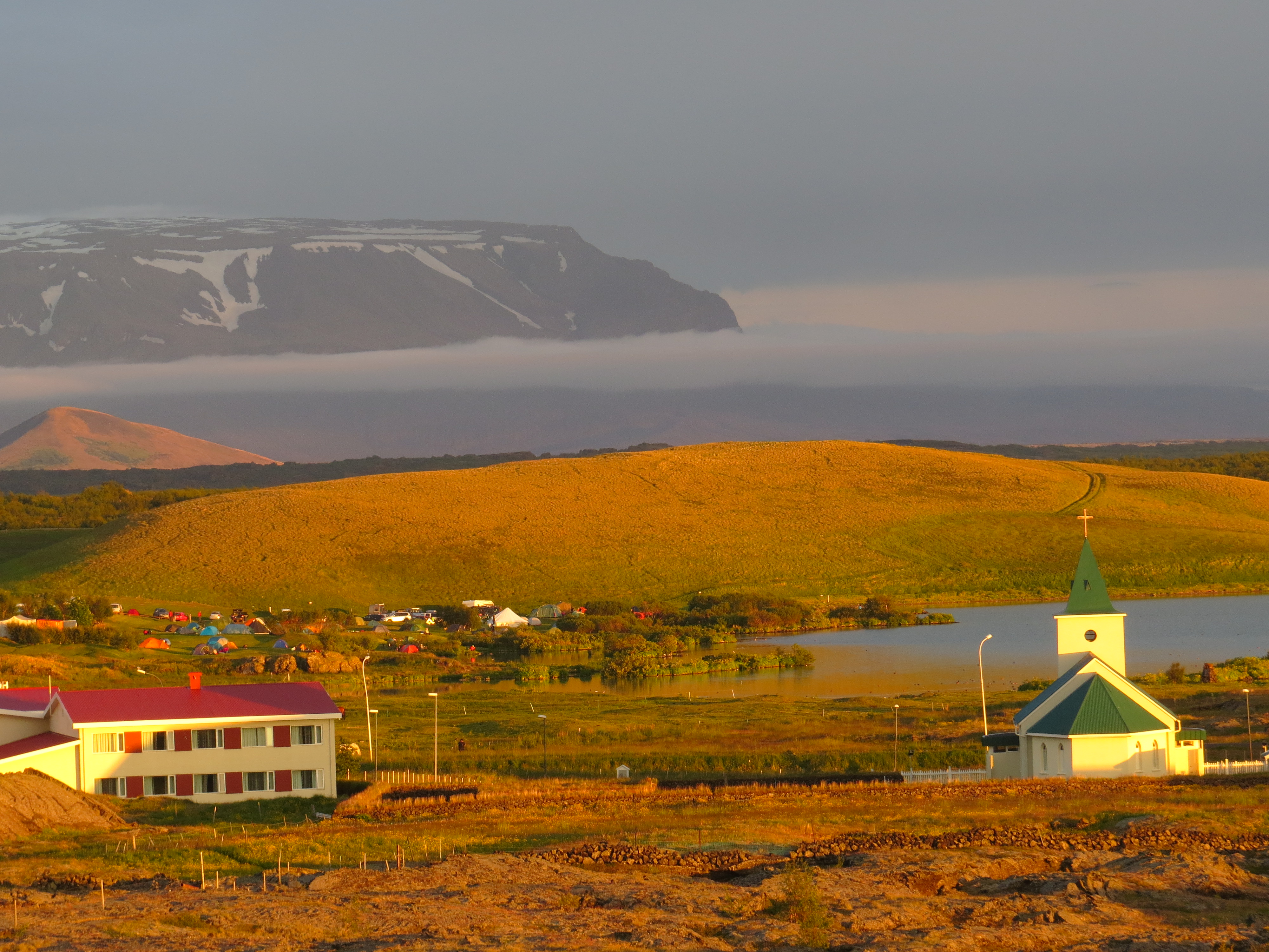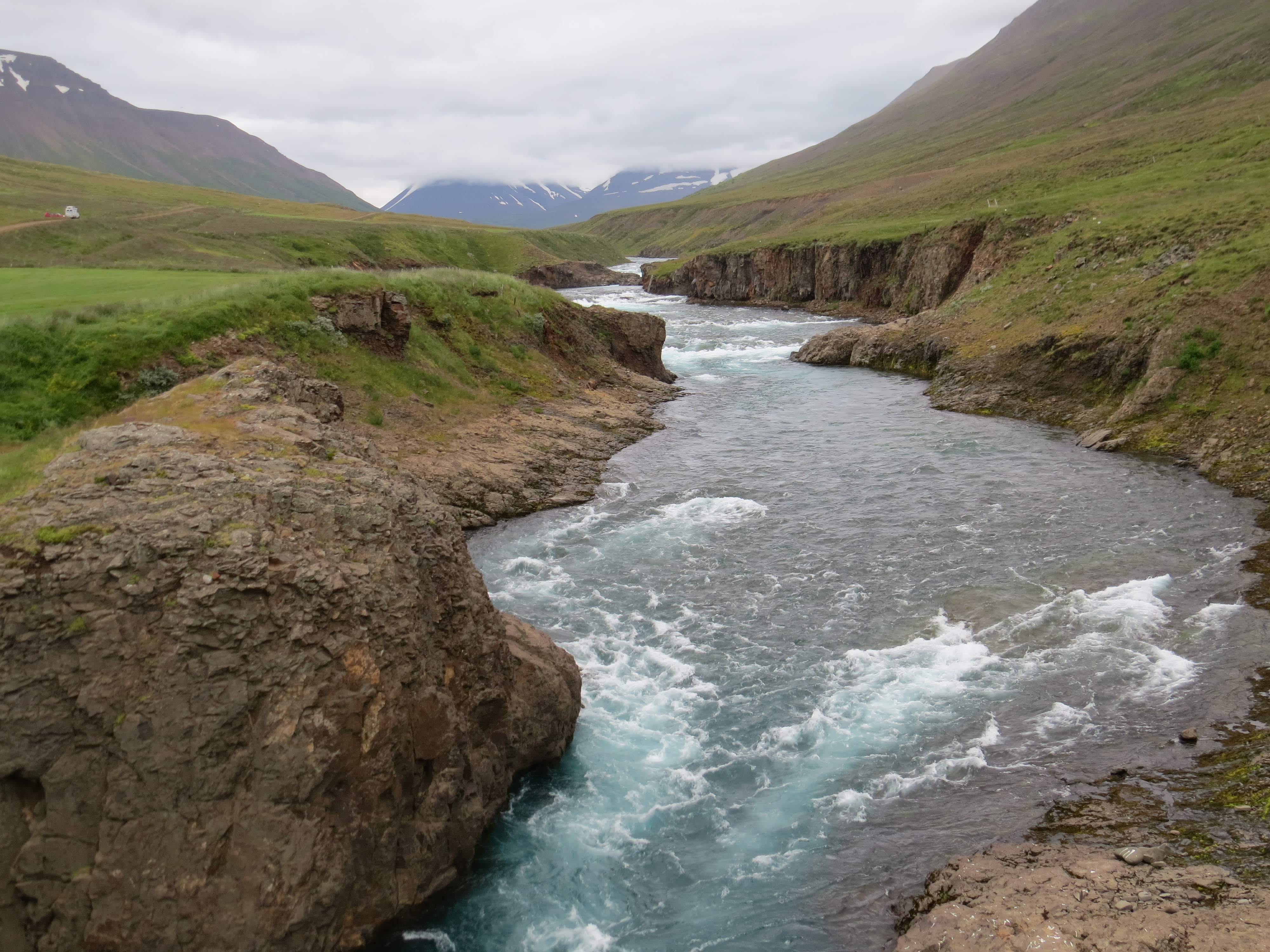 Après le réveil matinal tardif, on profite un de Akureyri et d'effectuer le ravitaillement pour les jours à venir. En fin de journée, on décide de repartir vers le Nord pour voir la ferme de Laufas. On arrive trop tard, pas grave on la visitera demain matin parés un bivouac en bord de rivière. Temps nuageux