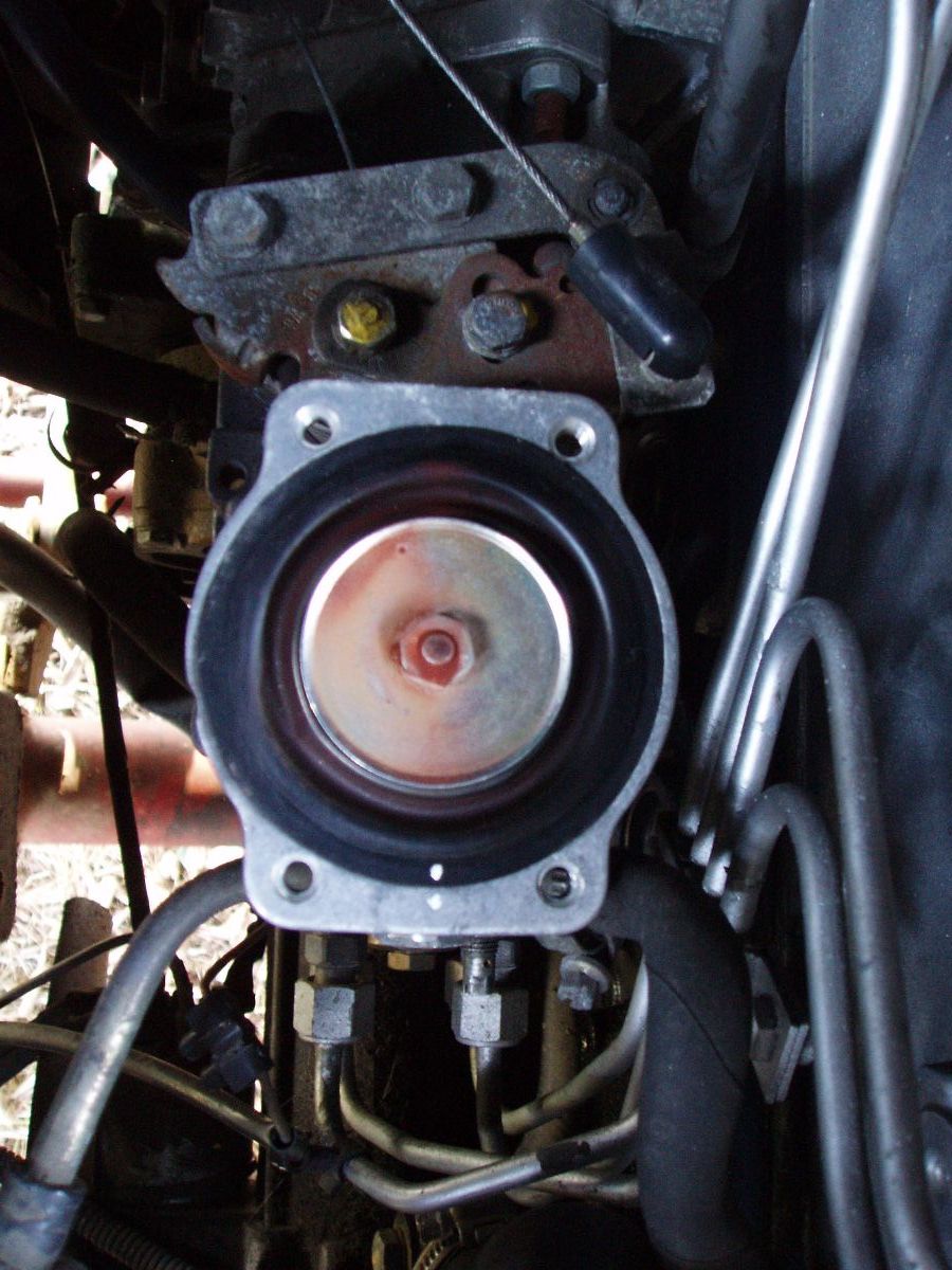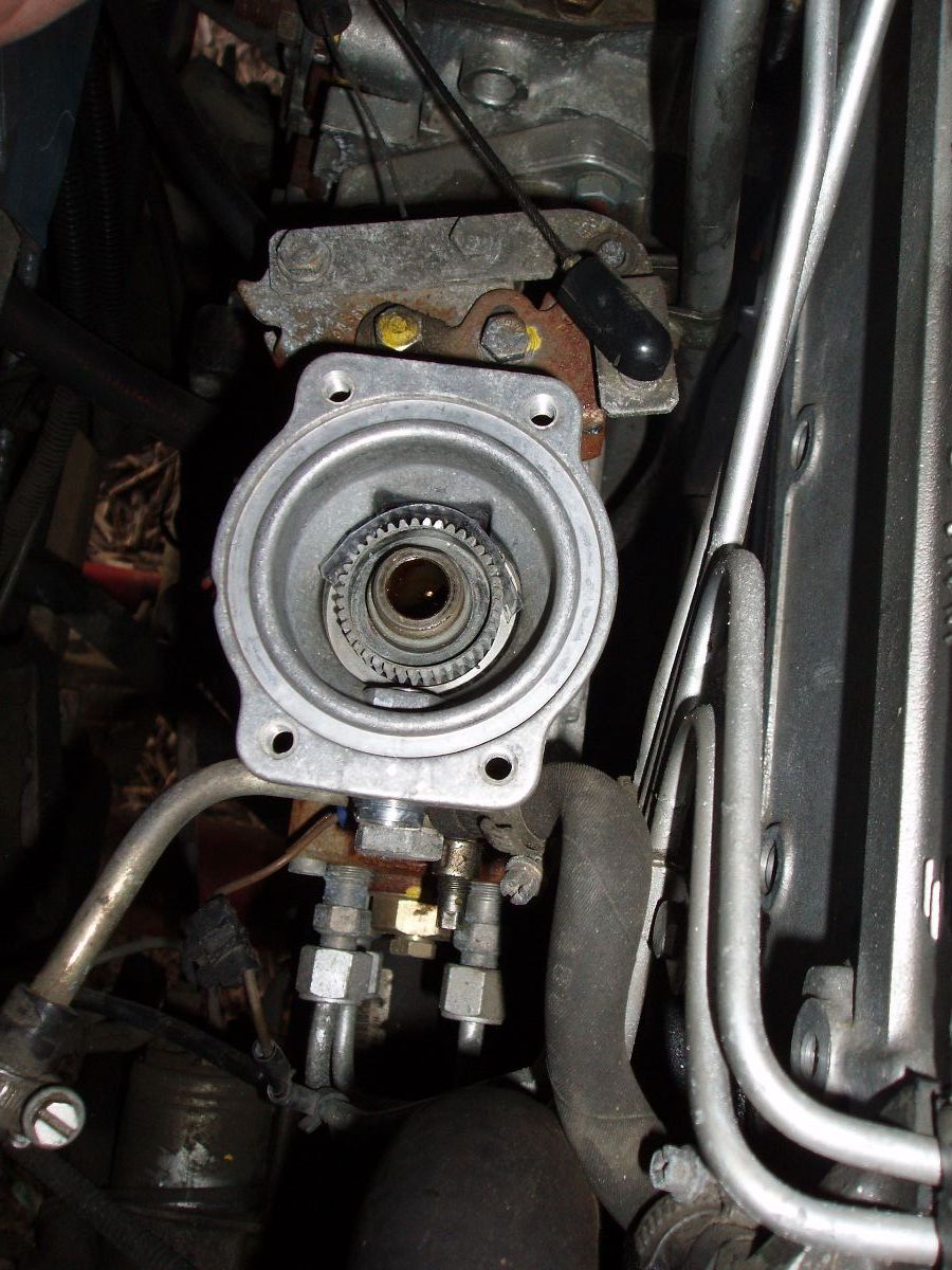 Apparemment sur Ivéco il y a un petit soucis d'accessibilité à une vis du chapeau de la pompe à injection, nous on a du bol ça ne pourrait pas être plus accessible : On peut donc enlever très facilement le couvercle : Voilà la fameuse came de LDA, on peut voir en bas sur le cône la trace laissée par le pointeau qui vient appuyer dessus, ainsi que l'entretoise blanche en haut de la came qui limite son débattement : 1/ Réglage de la tension du ressort de renvoi de la came :