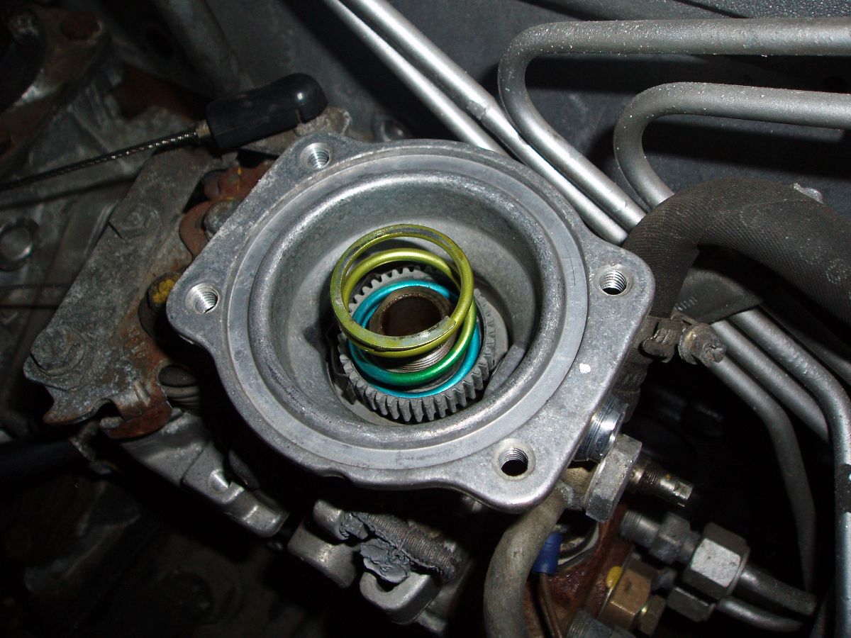 On a vu qu'il fallait enlever l'entretoise plastique blanche pour que la came puisse descendre plus dans son logement et augmenter ainsi le débit de gasoil lorsque le turbo est à pleine charge.