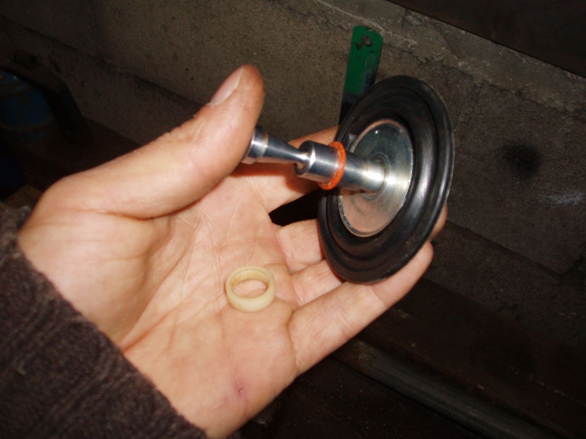 L'entretoise blanche d'origine fait 5mm d'épaisseur, donc si on se contente de l'enlever on voit qu'à pleine charge la came descendra trop bas et renverra un peu le pointeau dans son logement, ce qui est l'inverse de l'effet recherché.