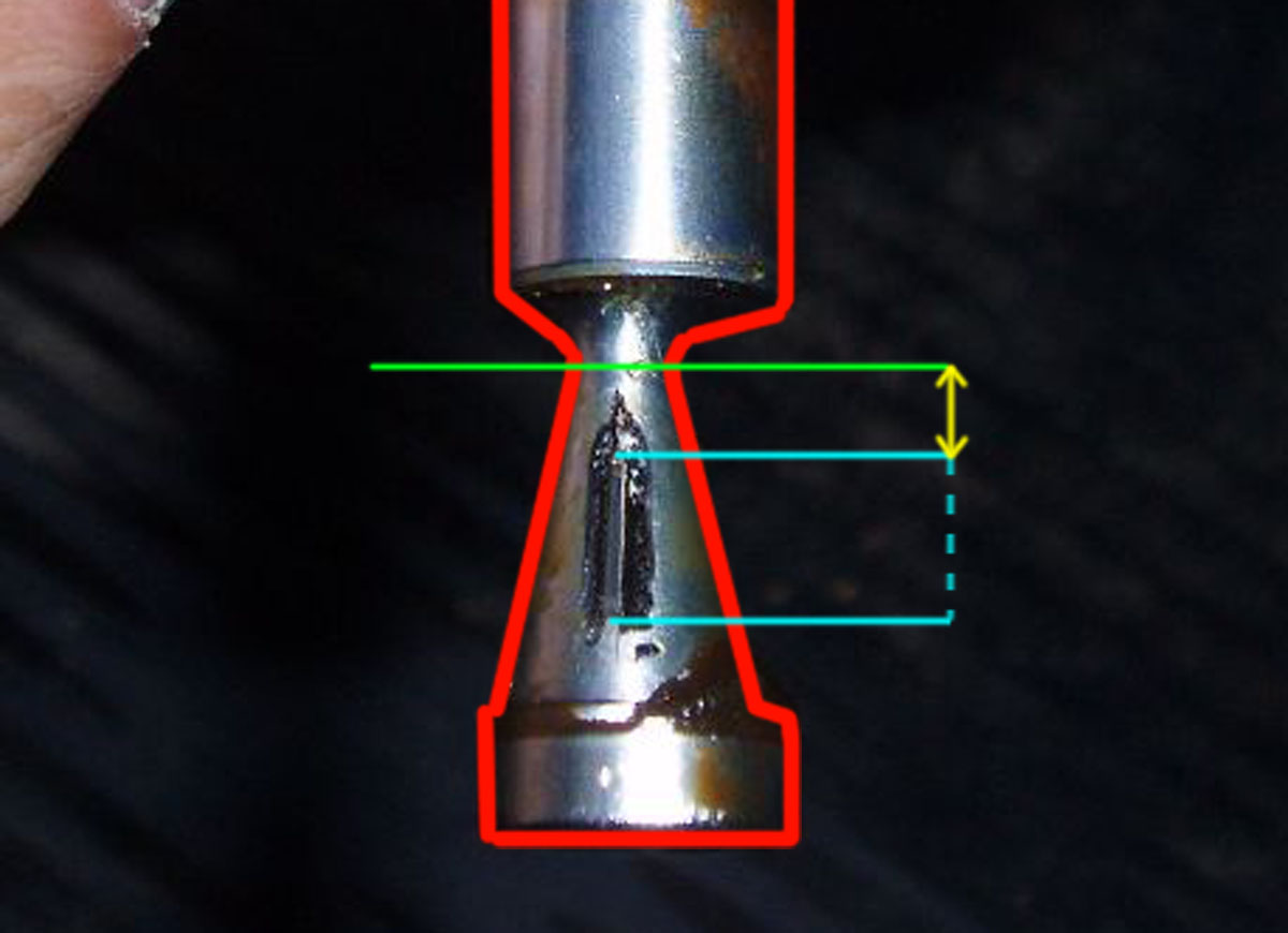 En théorie oui, mais en pratique je ne suis pas complètement d'accord : Entre la zone de débit max d'origine et la zone de débit max réel il y a 3.5mm (flèche jaune); pour permettre au pointeau d'aller au plus près de l'axe du cône il faut donc permettre à la came de descendre dans son logement de 3.5mm supplémentaires.