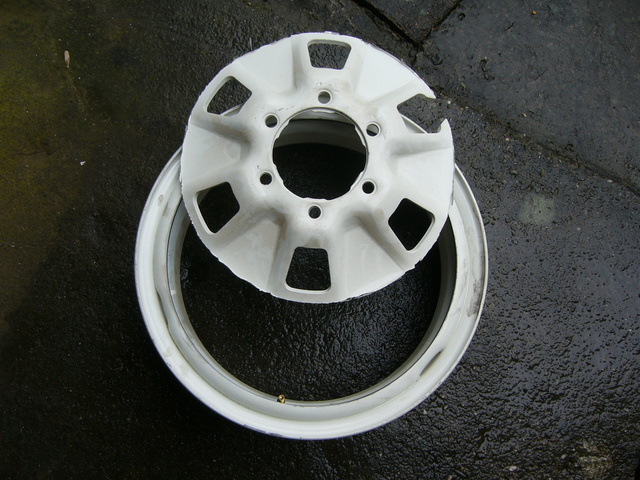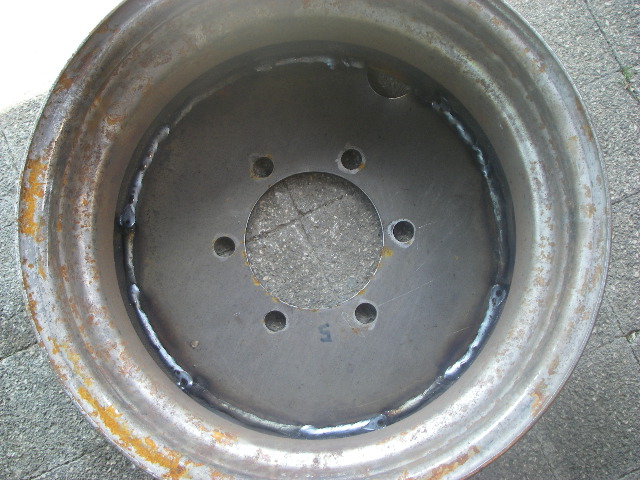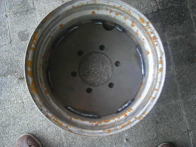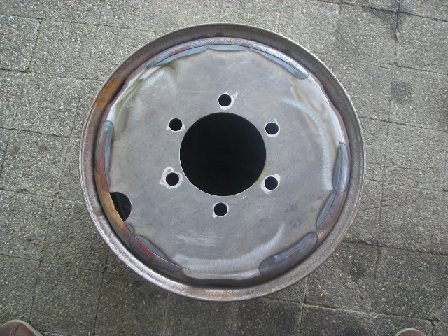 J'ai donc acheté 5 roues acier de HDJ 80 (7,5/16) dans lesquelles j'ai fait enlever une partie du voile pour pouvoir y ressouder une nouvelle pièce aux côtes Ivéco.