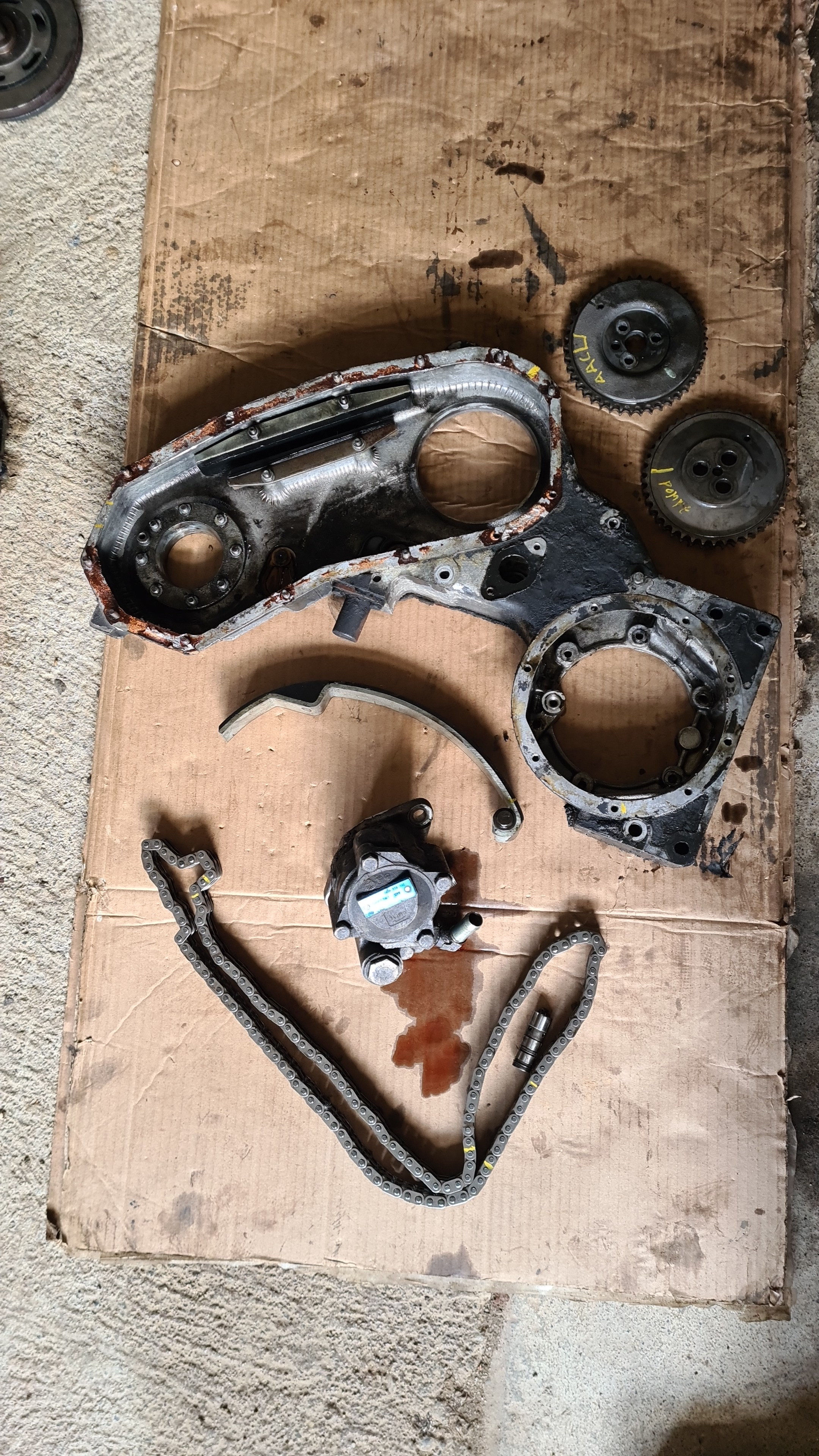 je doit audsi récupérer sur le vieux bloc le carter d'huile et la crépine,une pompe a eau neuve avec tendeur de courroie