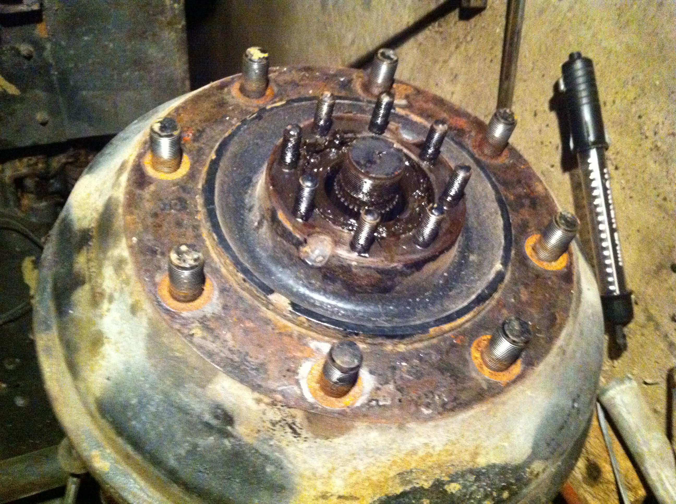 j' ai essayé d' y aller au marteau pour bouger le tambour. niet. remonté la roue à l' envers pour avoir un bras de levier plus grand et secouer tout ca, nada.