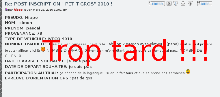 POST INSCRIPTION " PETIT GROS" 2010 !