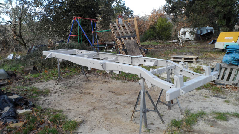 La peinture est terminée depuis le mois d'Octobre. Sur le châssis, j'ai bien protégé en mettant deux couches d'apprêt anti-rouille epoxy puis trois couches de finition. Avec ça, le châssis du TP3 devrait être tranquille pour une décennie!