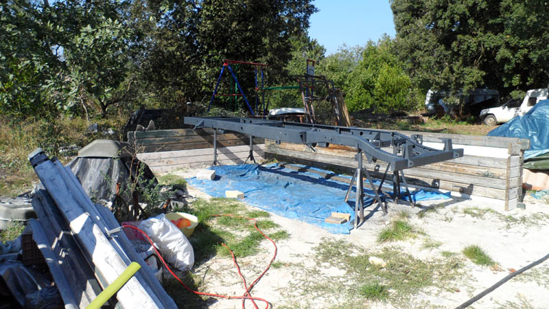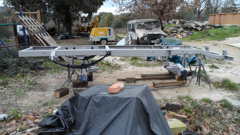 Les travaux avancent en fonction du temps et des finances.. Deux potes m'ont filé un coup de main y'a une dizaine de jours pour replacer les ponts AV & AR, c'est à cette occasion que j'ai pris quelques photos.