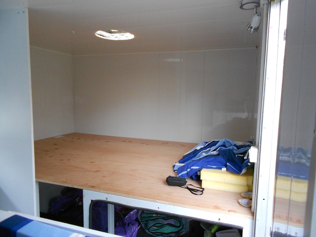 - Un coin "dodo" à 1m du sol. En dessous, une grande soute avec bouche ventilation basse. Au plafond un hublot.