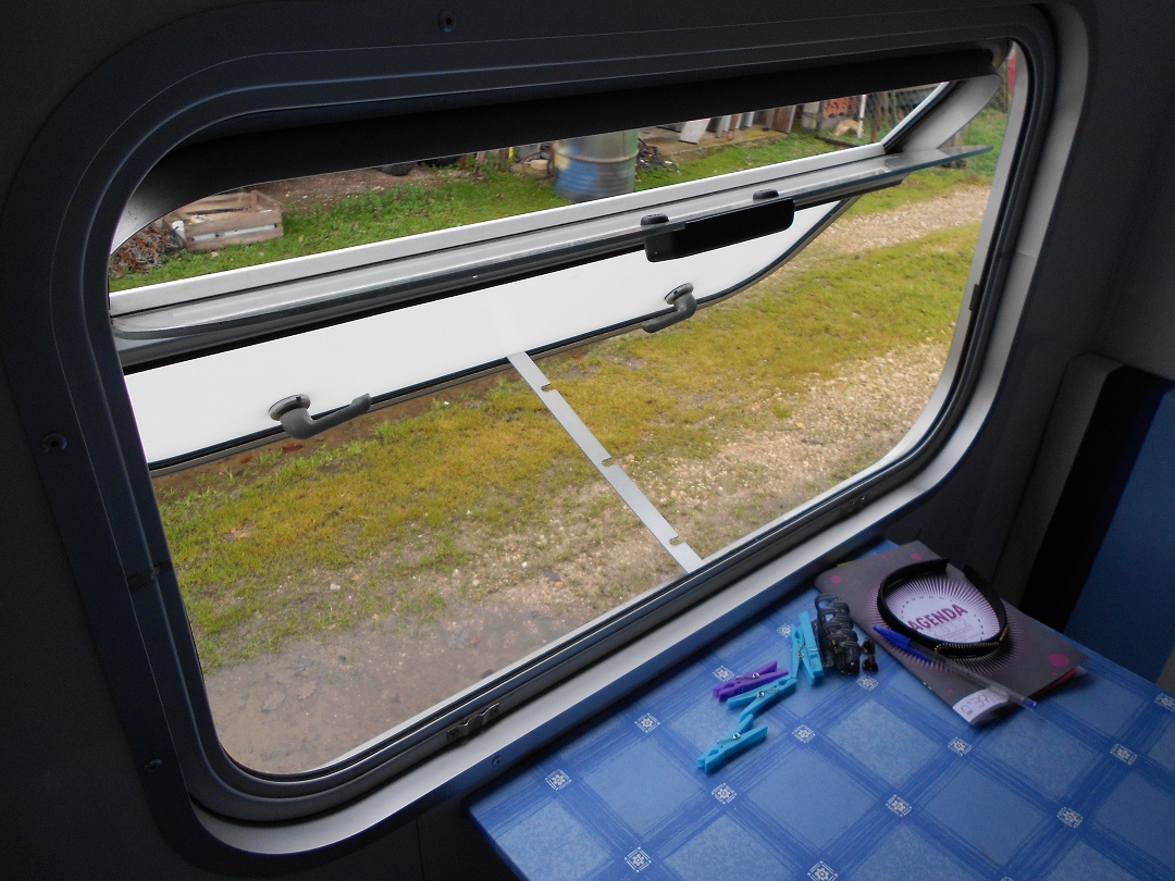 - 2 fenêtres (provenance ambulance) -> 1 coté droit, 1 coté gauche. La trappe du haut d'ouvre pour ventiler même en roulant, et la fenêtre s'ouvre en entier façon "lucarne".