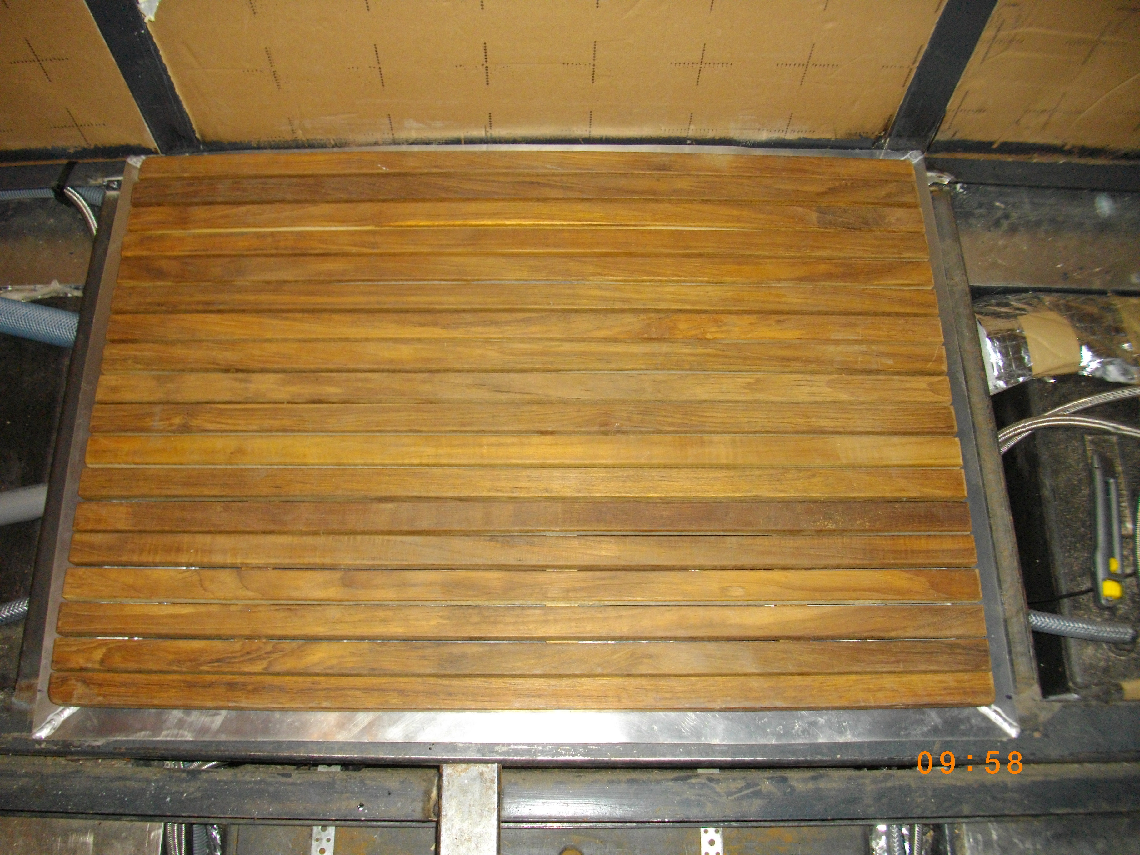 Juste une question, le caillebotis sera légèrement plus bas que le plancher? .. c'est la dimension totale de la douche avec parois ?