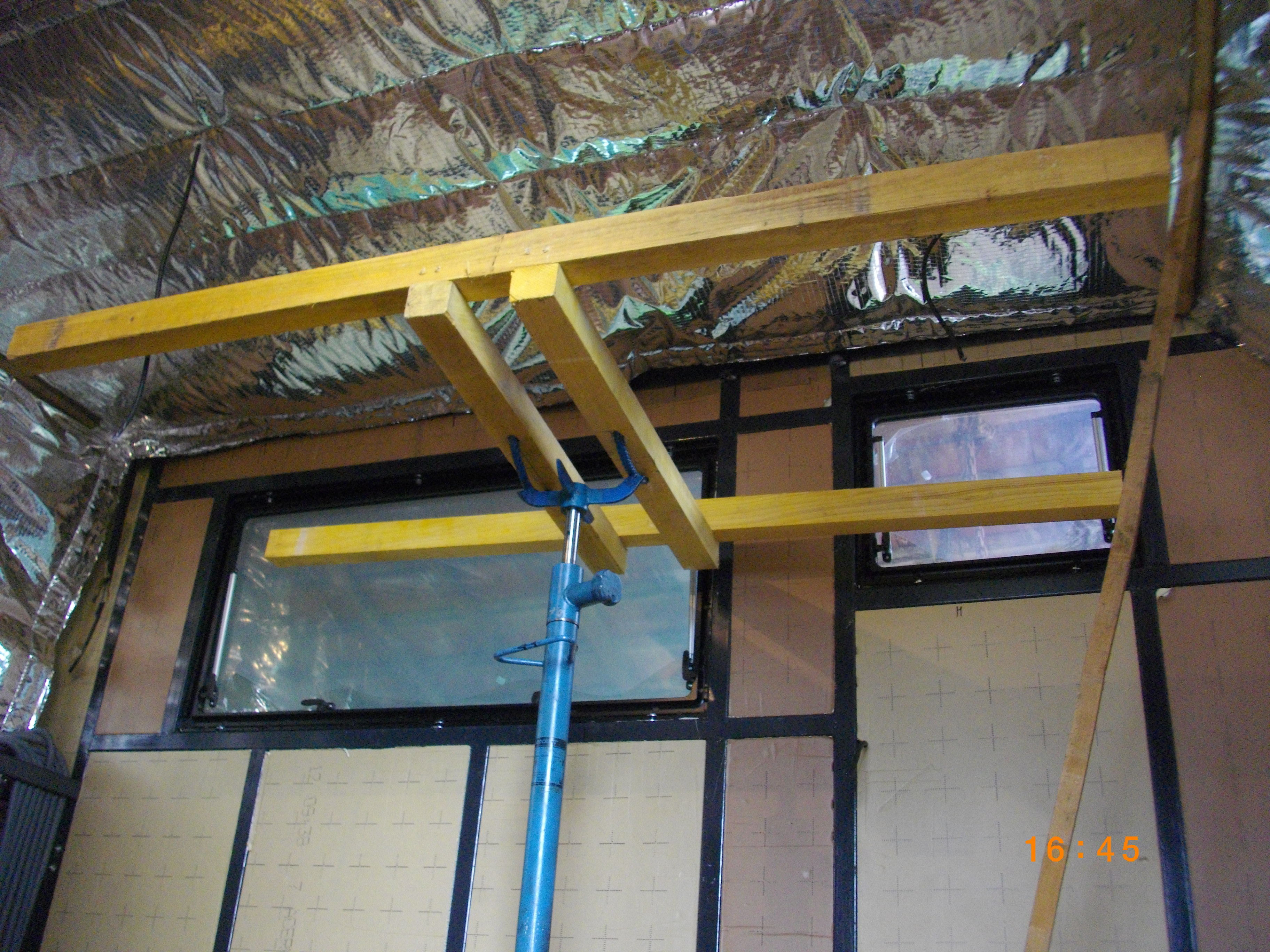 maintenant je vais attaquer la pose de l'isolant mince 23 couches et le contreplaqué CTBX en 10 ep