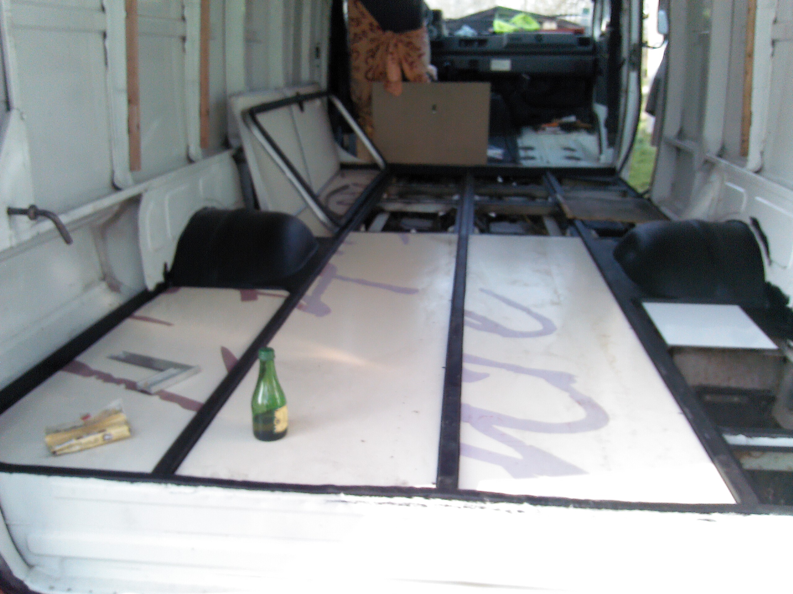 Je n'ai pas perdu mon temps et j'ai donc attaquer la réfection du plancher plus sont isolation nouvelle, poser un de mes fenêtre, mes nouveau rétroviseur ,ma prise d'air sur le capot , commencer a regarder pour étudier ma futur porte de caravane en replacement de la porte latéral;
