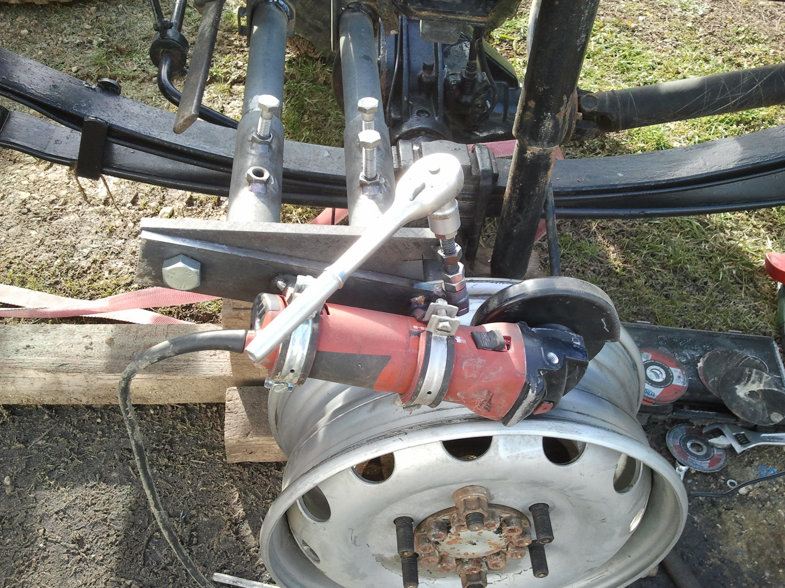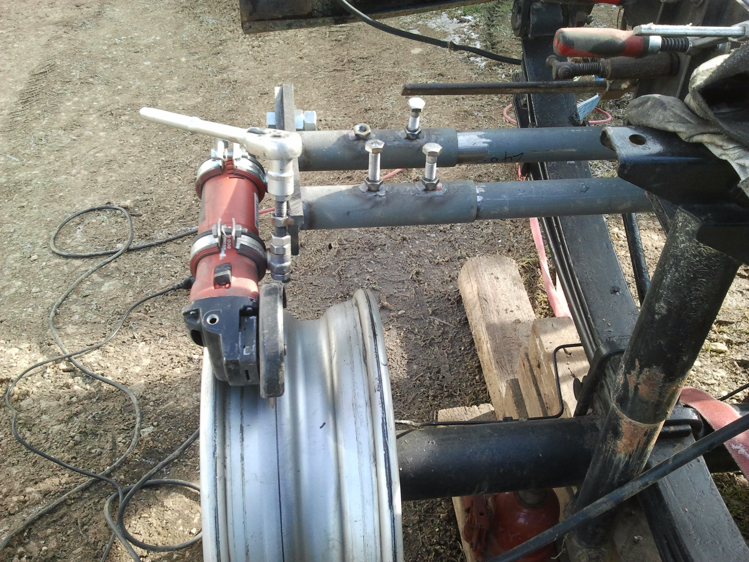 je me disais, plutôt que de chercher un tourneur, pourquoi ne pas utiliser le camion lui même et fixer un petit chariot porte outil...