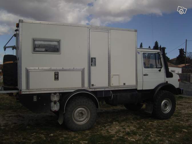 Cause départ étranger, brade 4X4 UNIMOG 1300 L MERCEDES ENTIEREMENT EQUIPE POUR PISTES ET GRANDS VOYAGES peut être conduit avec un permis B obtenu avant 1975