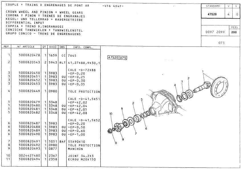 Les pièces du couple conique (pignon d'attaque et couronne) ne portent pas les mêmes numéros et sont donc à priori différentes.