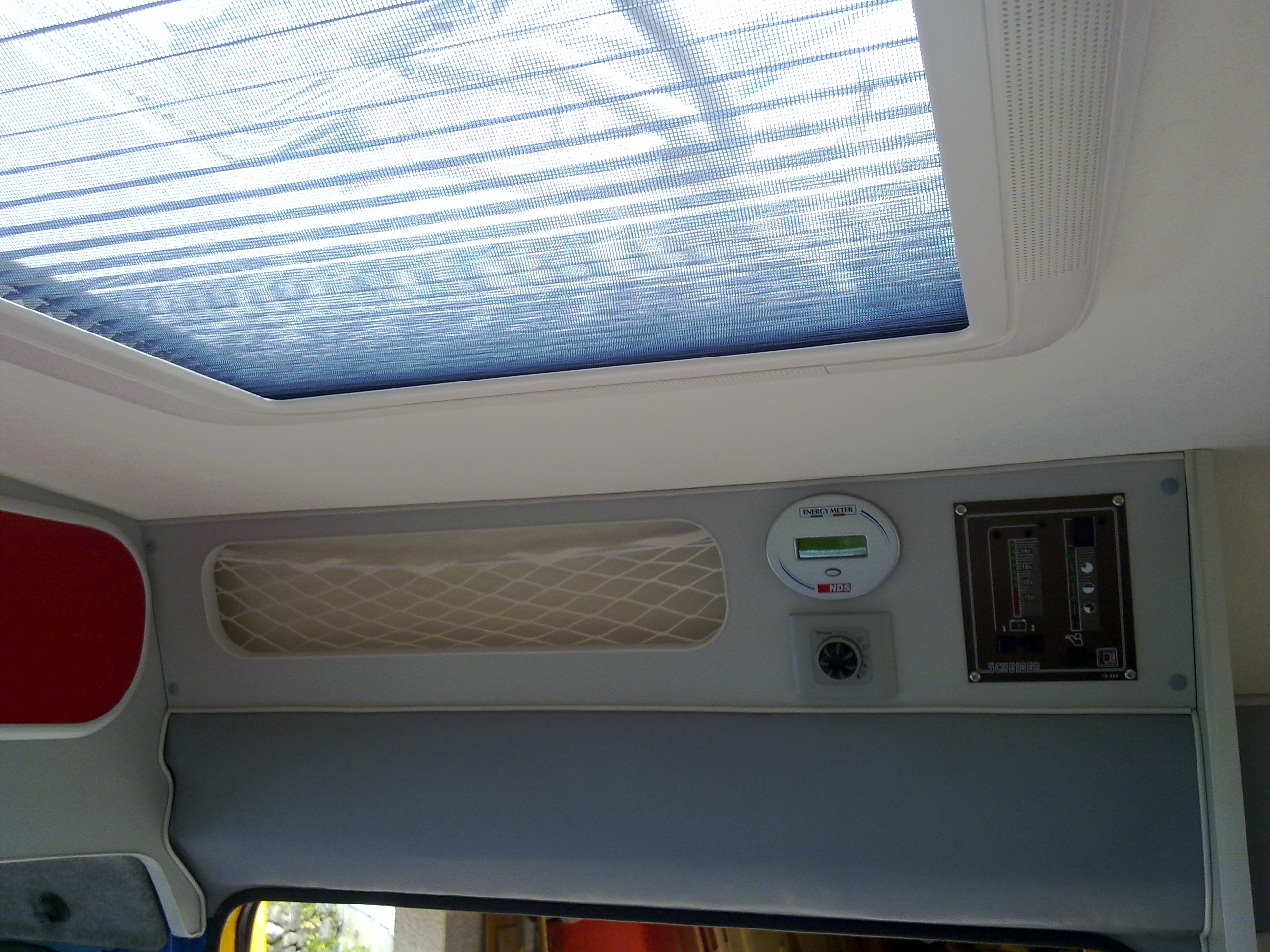 - l'électricité: 2 batteries aux 150 ah NDS AGM Green Power + 1 batterie moteur 95 ah Exide AGM reliées via un Cyrix ou + NDS Power Service Gold + NDS Energy Meter + 2 panneaux solaire 100 W. Et un coupe circuit sur batterie moteur.