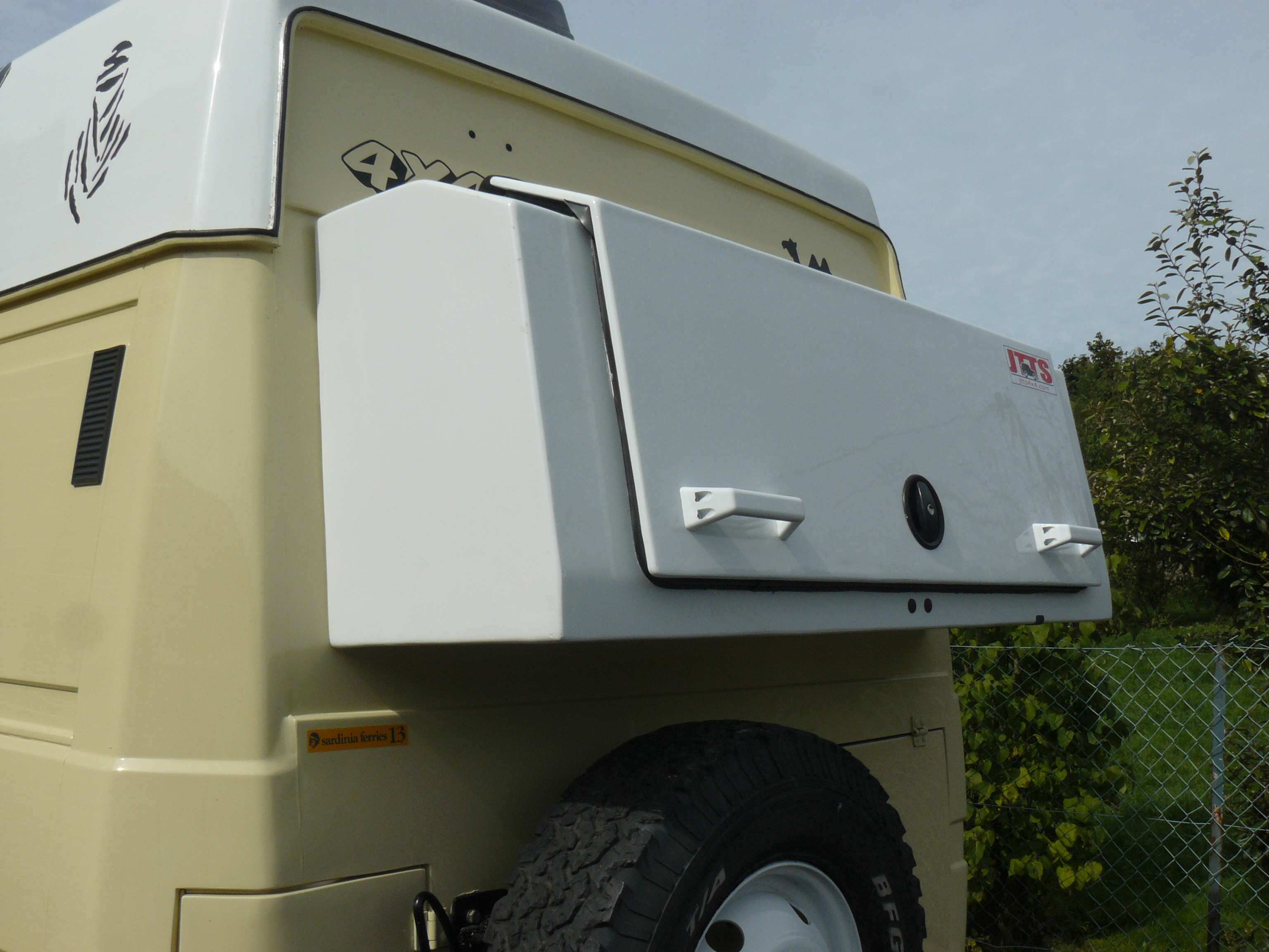 Sur le coté une trappe permettant de glisser les plaques a sables(l'ouverture se fait de l'intérieur via une tirette de capot et verrou(ça évite une clé supplémentaire)