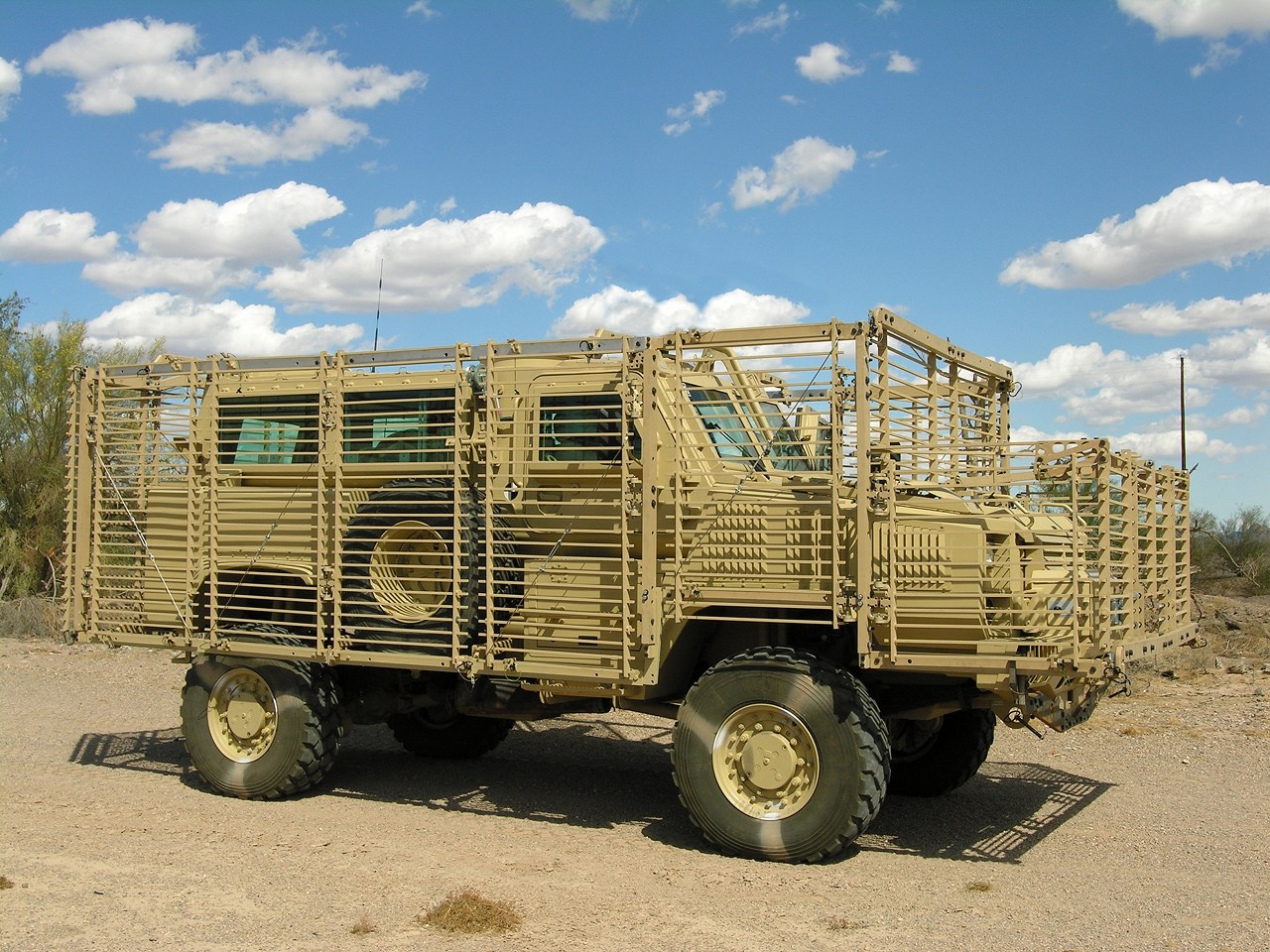 je pense plutôt à un système pour installer du camouflage (mais alors ce cserait surdimensionné ; non ? ) ou eviter les degats lors des émeutes (jets de pierre) quoique les mili dans des émeutes, hors guerre civile, ça ne doit pas être courant ?