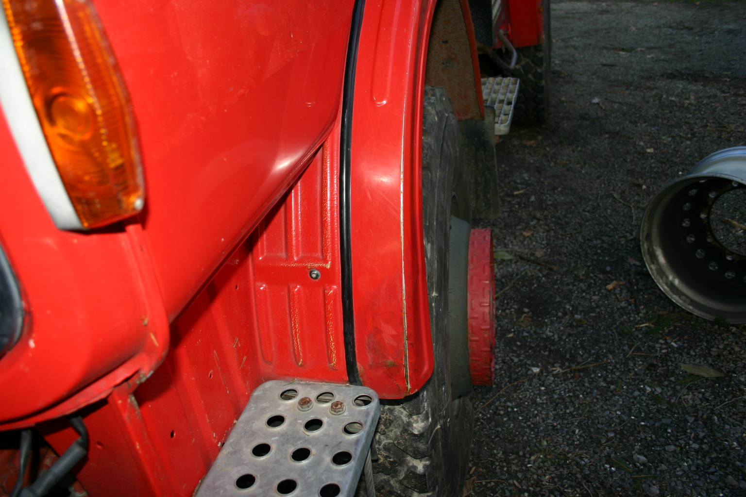 En me balladant sur le blog de Bucephale, j'ai remarqué que son bahut a des marche-pieds boulonnés sur ses roues avant...