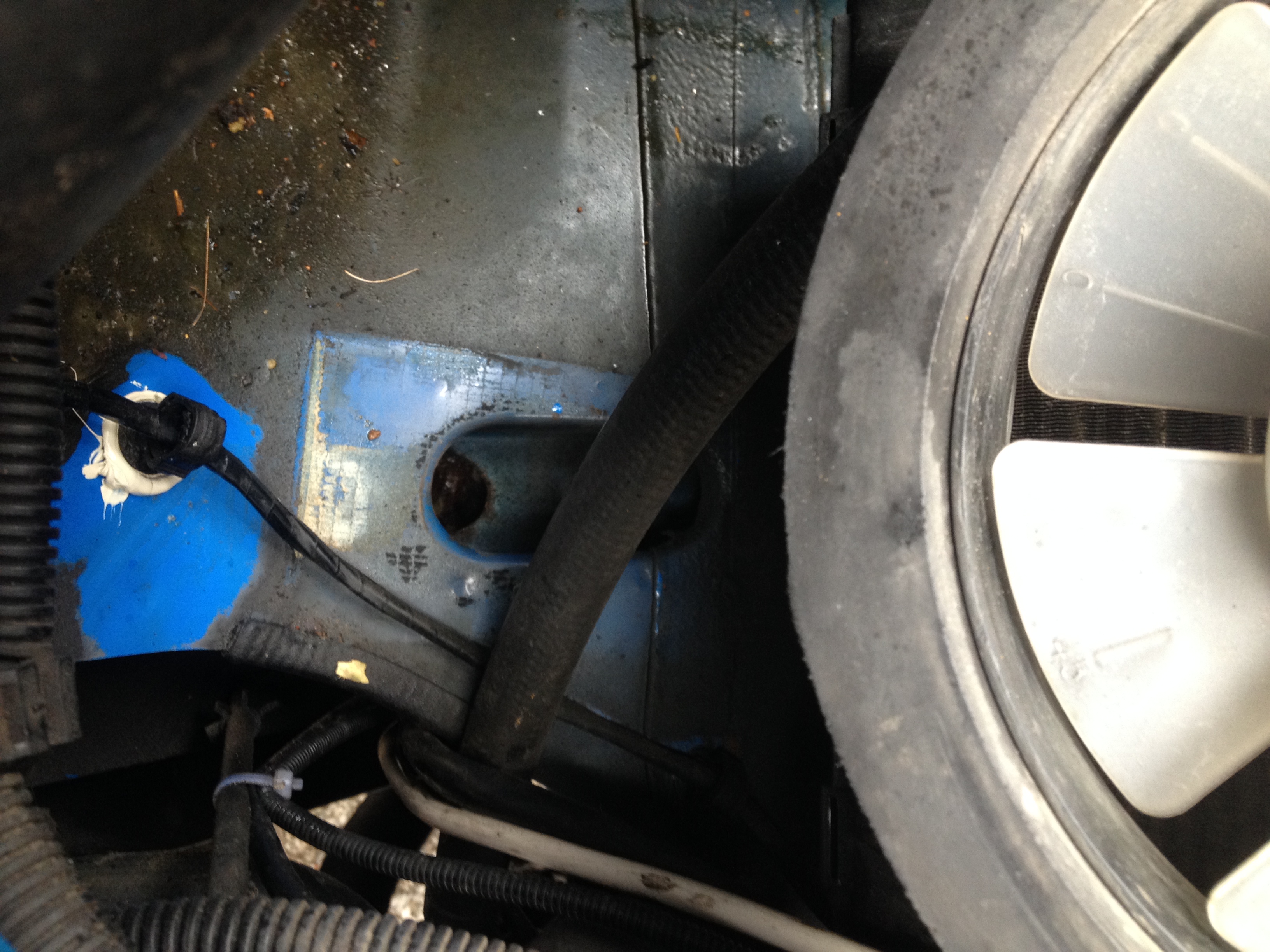 De là, ça coule jusqu'à l'arrière de la cabine, sous le tapis.