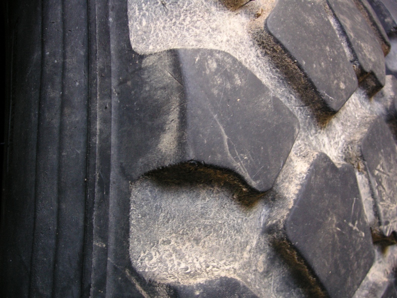 Photos des 4 pneus que je vends 100 € les 4 (des XZL 275 80R2O) : ... Pas pu les laver, karcher en panne