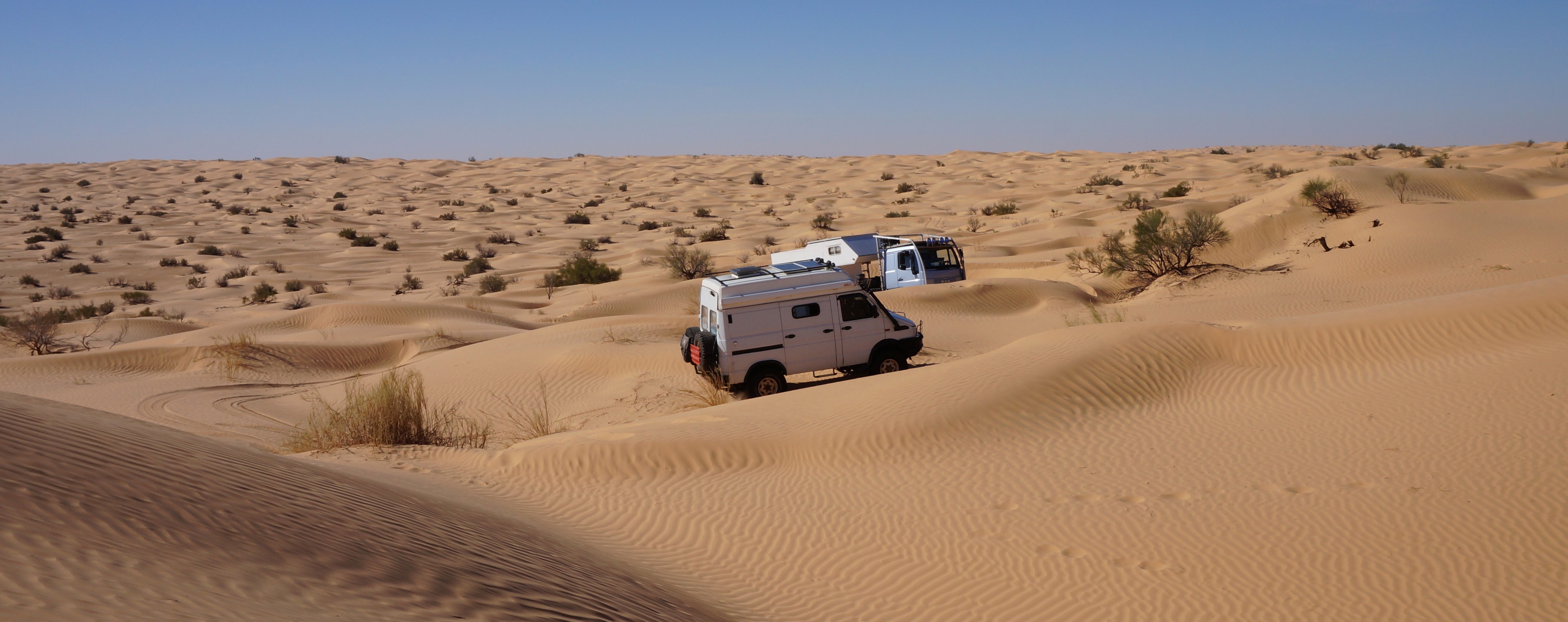 Pour ce que j'appellerai des dunes standards type Erg Chebbi ou Chegaga au Maroc, ou aux alentours de Douz et Ksar Ghilane...( difficultés que je classe 3/5 ) les 2 véhicules sont équivalents en franchissement.