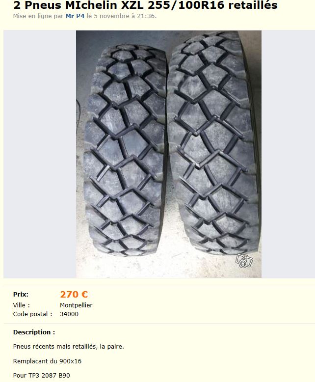 Re: 255/100r16 - 900x16 XZL retaillés
