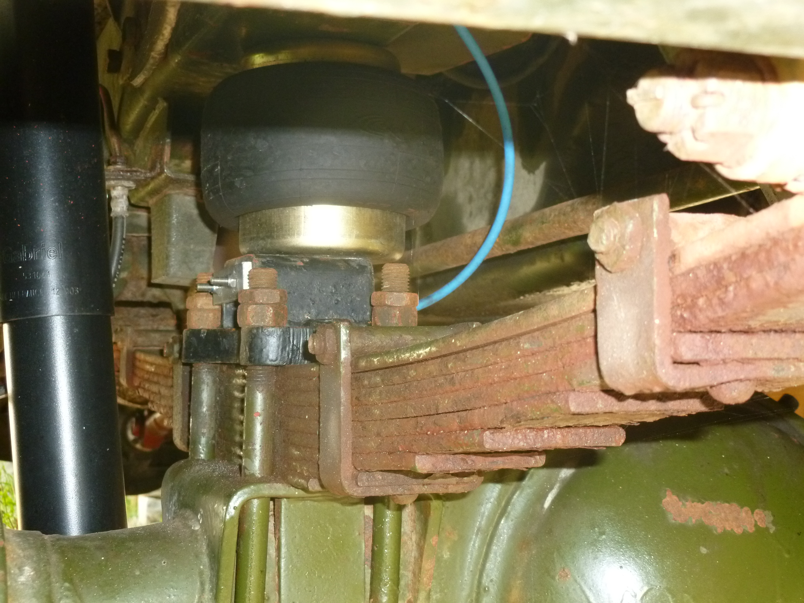 Mise en place de coussins pneumatiques JSA ref 2710807 + amortisseurs TWR ref JHZ5091 à l'avant: Remplacement des roues par des 20" + Michelin 255/80R20(différence d'environ 5 bons Km/H par rapport aux roues 16",la vitesse indiquée au compteur correspond à la vitesse reelle) + mise en place de longues portées : Mise en place de 2 sièges suspendus: Mise en place d'un second réservoire d'essence de 60L: Les essais routiers me semblent satisfaisant concernant la températures du moteur depuis la mise en place du tunnel d'évacuation d'air vers le toit (la température ne dépasse pas 85°C contre un bon 90°c l'an passé sur les mêmes parcours et la même température ambiante d'environ 25°C).