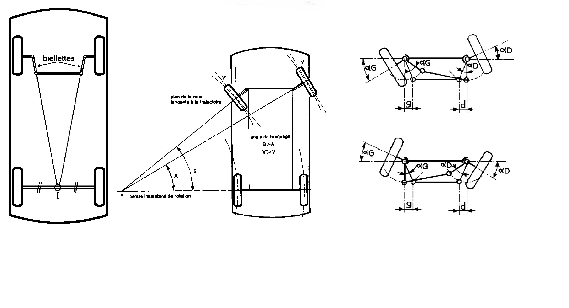 un bel exemple avec les 2CV, et leurs roues avants qui se couchent en braquage...FONCTION " ÉVITER LE RIPAGE DES PNEUMATIQUES "