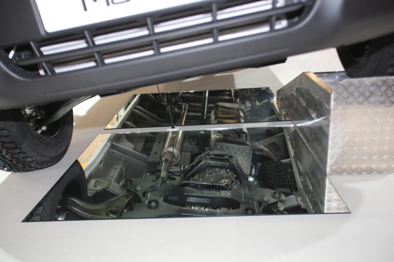 La transformation opérée par Oberaigner consiste à monter une boîte de transfert en sortie de la boîte de vitesses afin de pouvoir transférer le couple vers les roues avant, dotées naturellement de cardans. La mise en route de cette transmission est gérée électroniquement, depuis un boîtier de commande implanté au niveau de la console centrale. Elle dispose de deux modes de fonctionnement : le mode route (4x2) et le mode « mauvaise route » et hors chemin (4x4). Dans cette position, la transmission avant est enclenchée et permet d’évoluer dans des conditions très difficiles. Elle est associée à un réducteur enclenchable qui permet d’augmenter le couple moteur en sortie de boîte d’environ 40 % (rapport de 1 : 1,42 contre 1 : 1).