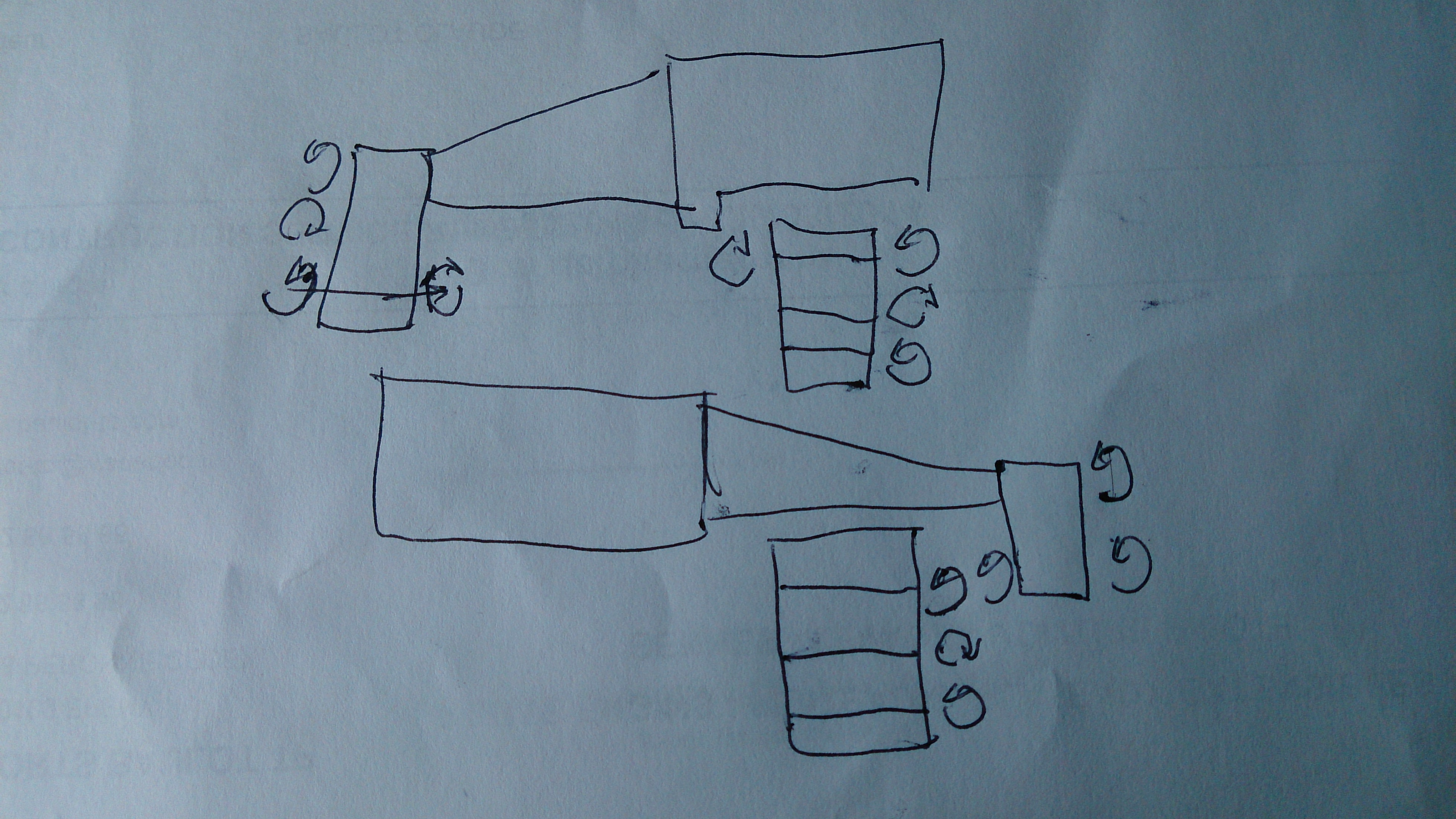 Les avantages, l'utilisation de câbles est facile à ajuster, facile à réparer, et aussi chacun des groupes moteur pourra être isolé, de sorte que si l'un tombe en panne on puisse rentrer juste avec l'autre...