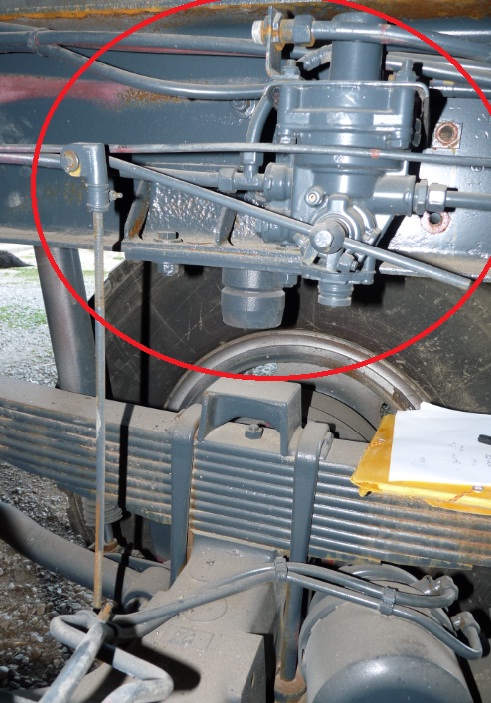 le répartiteur de freinage au niveau de l'essieu arrière :