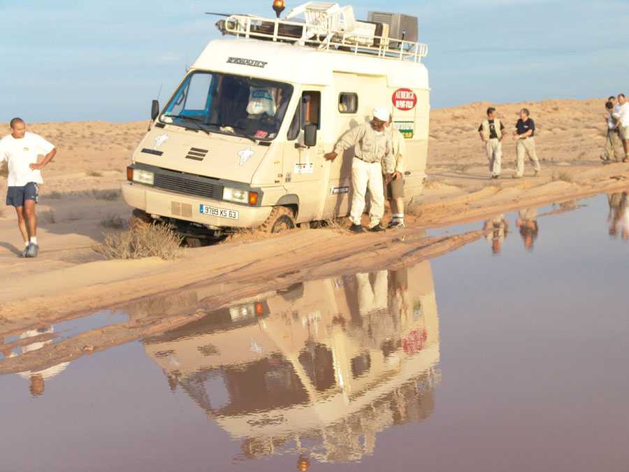 Tiens au passage, voilà quelques photos d'une de ses anciennes vies, c'était en Afrique, il était camion d'assistance sur un rallie de 4L qui faisaient la route France/Casamance (Sénégal) :