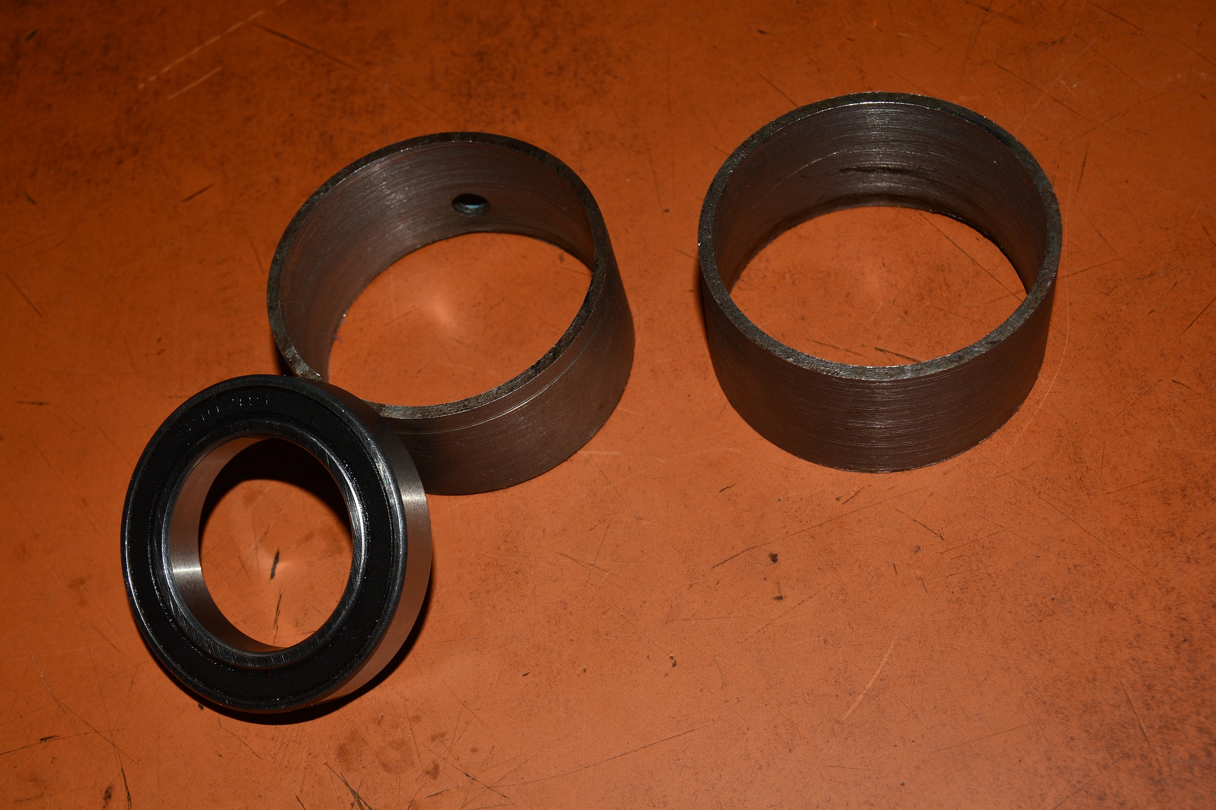 et certainement que la plaque d'étanchéité du roulement tien bien plus la pression depuis l'exterieur qu'un joint spi,aussi l'etat de surface de la bague et de l'arbre sont excellent,(le ne les ai pas fait a la lime) et j'ai badigeonné le tout au silicone auto (gris) avant de les rentrer en force...