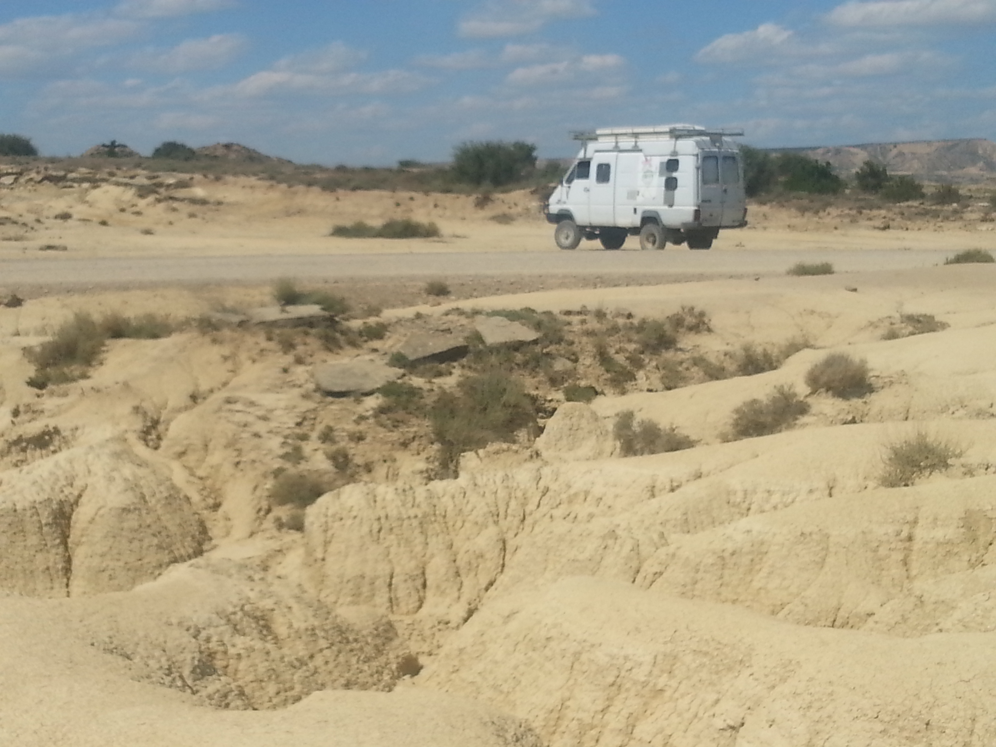 Pour info, lorsque nous nous arrêtions dans les villages, Obelix, notre B90, avait une forte cote de sympathie auprès des Espagnols. Ils étaient très surpris par cette configuration de B90.