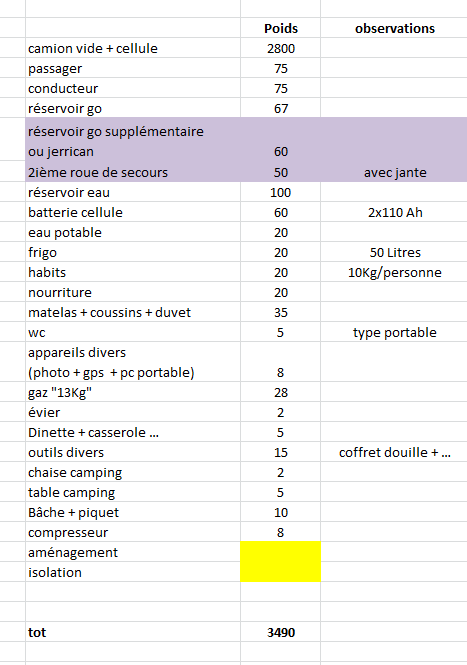 mais j'ai mis plein de bordel dedans (batterie, frigo, convertisseur, wc....) et hop retour a 500kg.