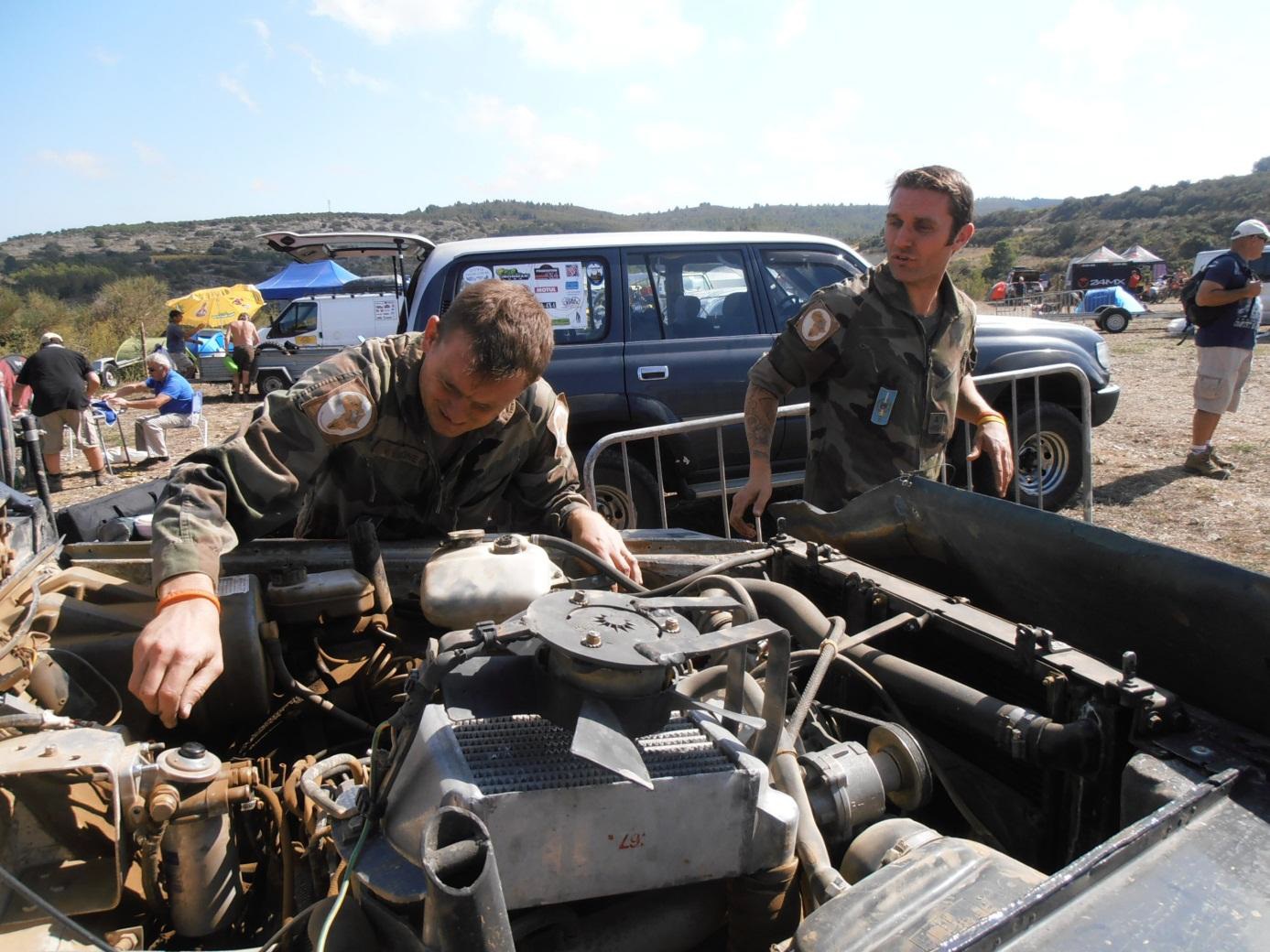 Le premier véhicule s’élance sur les pistes vers 12h30. Dans l’ordre : les motos puis les 4x4 et enfin les 2 roues motrices. Le P4 est au rendez-vous mais rapidement une prise d’air sur le circuit de gasoil empêche le moteur de lâcher les chevaux.