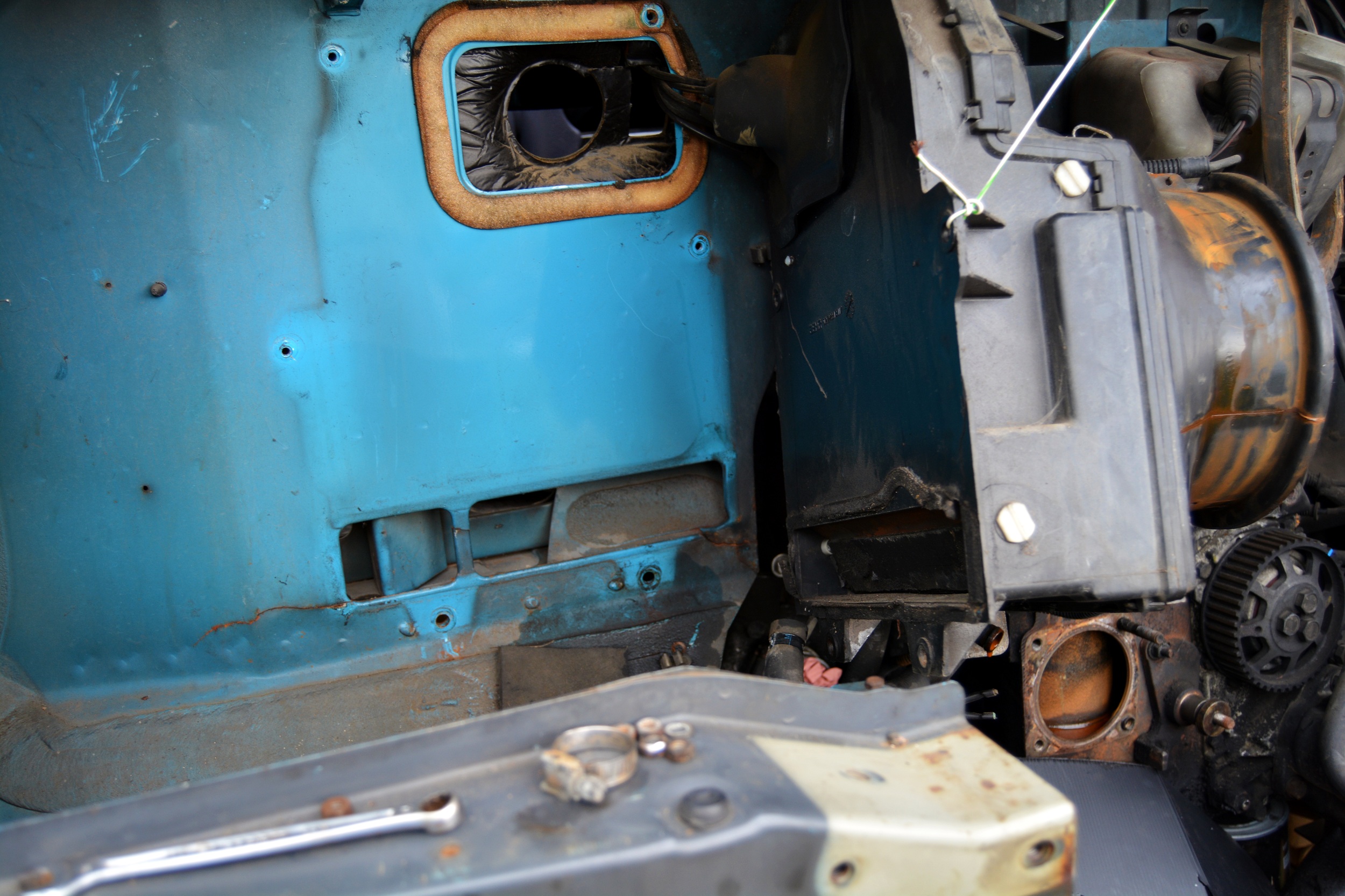 là je refait la distribution,change la pompe a eau,la bague étanchéifier du vilebrequin,ainsi que le régulateur d'alternateur,il faut aussi que je déplace le filtre a air afin de pouvoir placer la deuxième batterie a coter du bloc chauffage....ça rentre au chausse pied mais ça rentre...