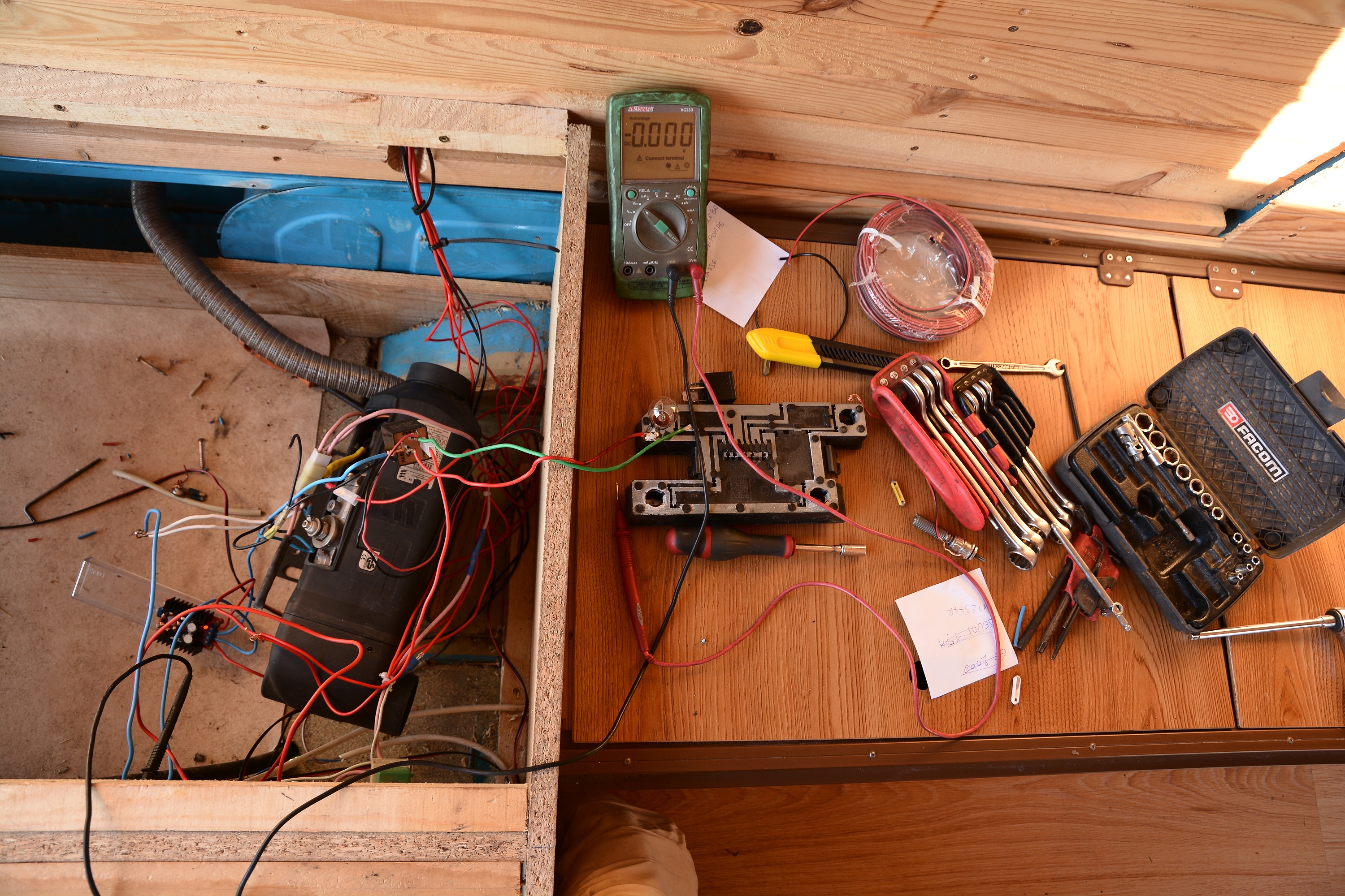 mise en place de l'eberpacher d1lc qui a déjà fait le shelter sur le 2000 ensuite la carlita sur le 2000 aussi et enfin le b110...le souci ici s'est que le chauffage est en 24v,donc j'ai acheter un transfo 12->24 de chez f1lzr (via un lien fourni par le bmh)....