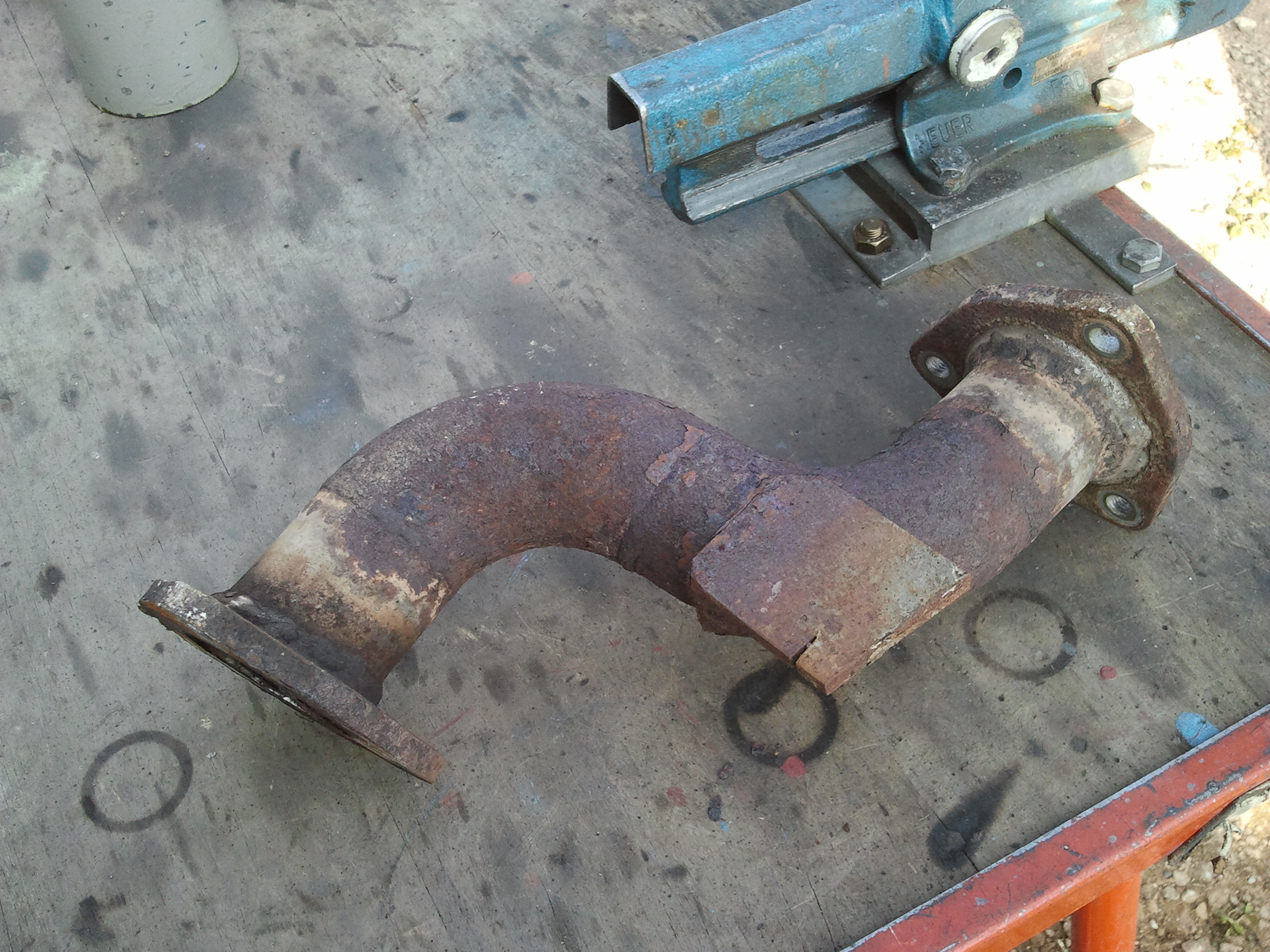 Pour la ligne, j'ai repris la bride d'origine qui va sur le turbo, normalement c'est un alliage qui ne rouille pas, de l'autre coté c'est aussi la bride d'origine qui elle est toute rouillée mais assez épaisse pour durer encore longtemps, tout c'est fait un peu dans l'urgence.
