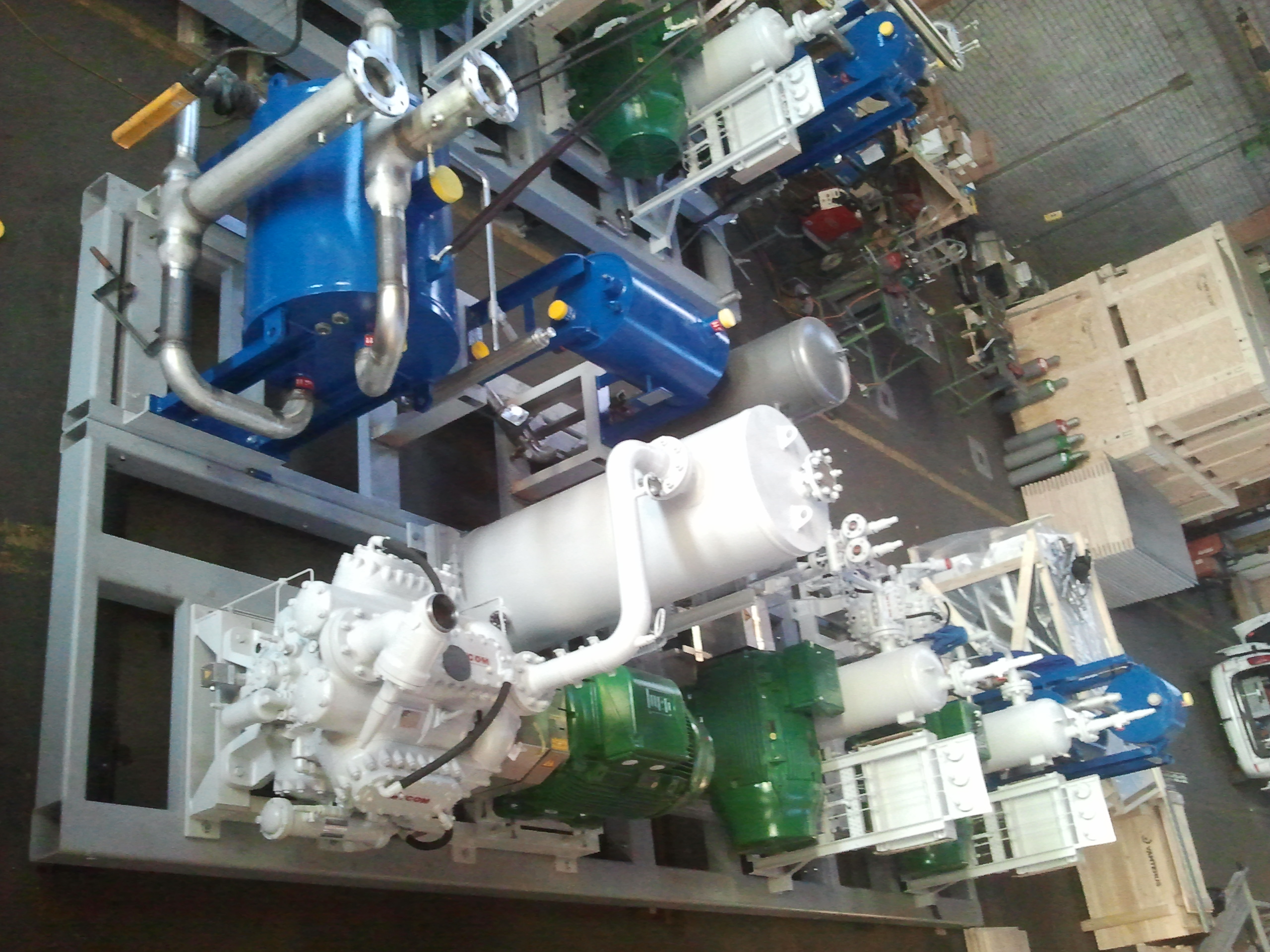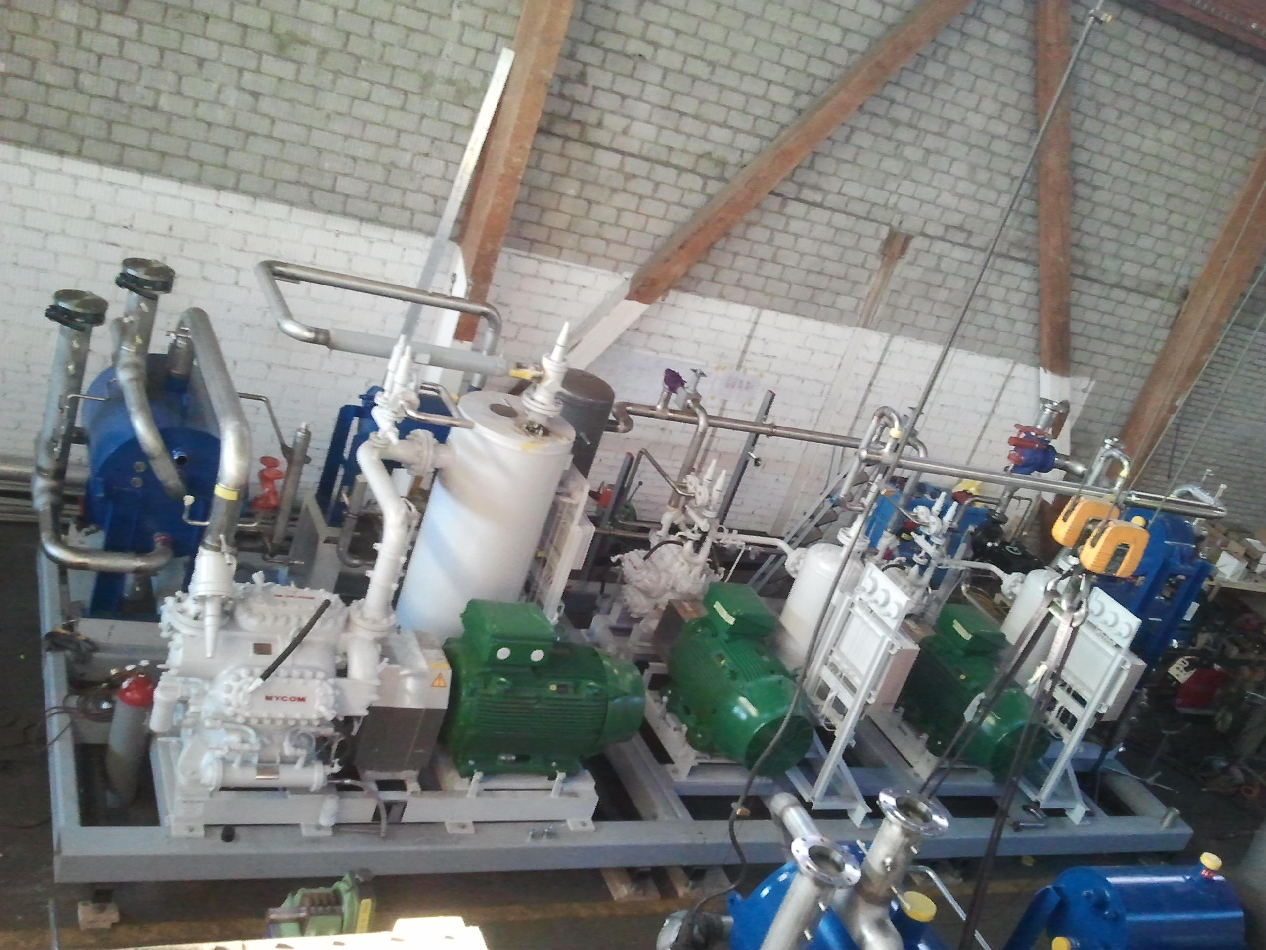 Pour la technique, un compresseur 6 cylindre pour la basse pression avec un moteur de 340cv et deux petits compresseur haute pression avec des moteur de 270cv, en sortie 50 bars et l'ammoniaque est à 130°. Puissance calorifique 2500kw.