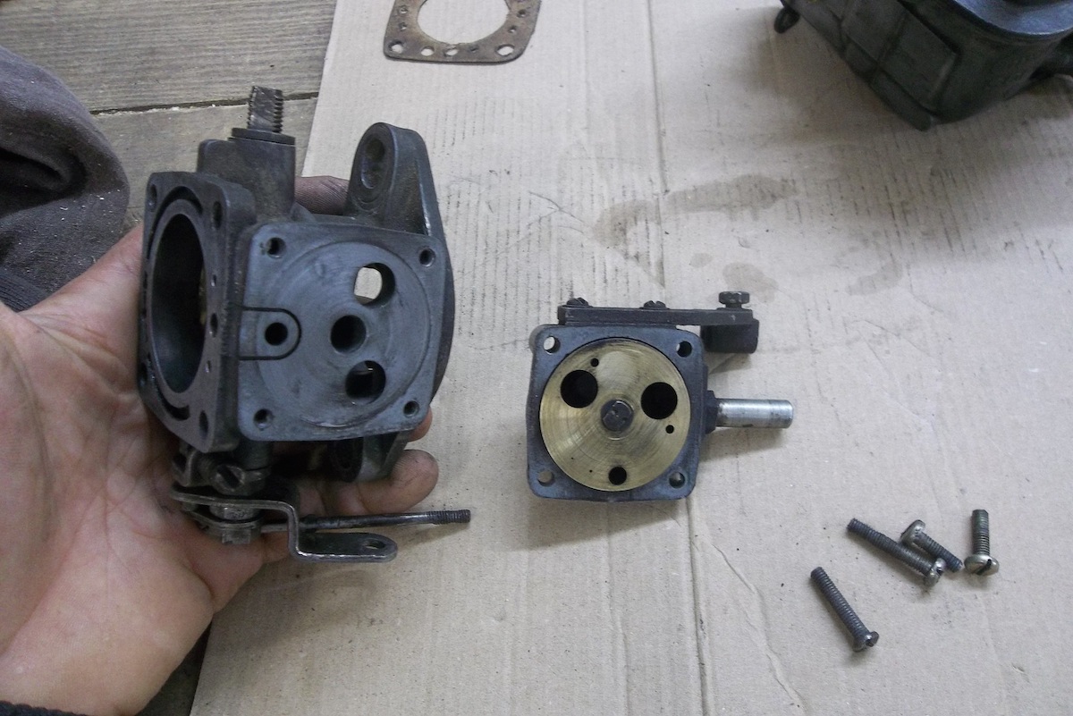 ça pisse par le téton en bronze sur le dessus de la cuve, qu'est-ce que c'est que ce truc d'ailleurs? J'imagine qu'il doit y avoir un joint dessous type torique? la vis au dessus est foirée je vais m'amuser pour la sortir...<br />Ca pisse aussi par le starter et il me semble aussi par l'axe du papillon.