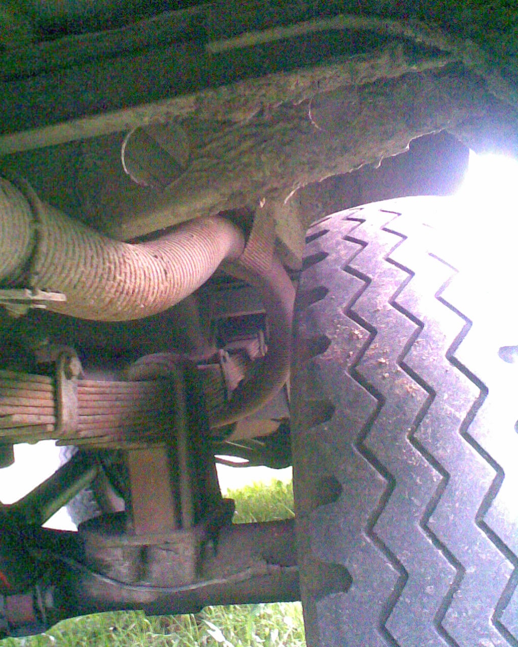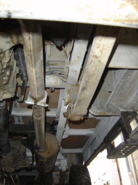 perso, j'ai déplacé le silencieux qui était entre le longeron de châssis et la carrosserie pour le mettre entre la boîte de transfert et le longeron de châssis.