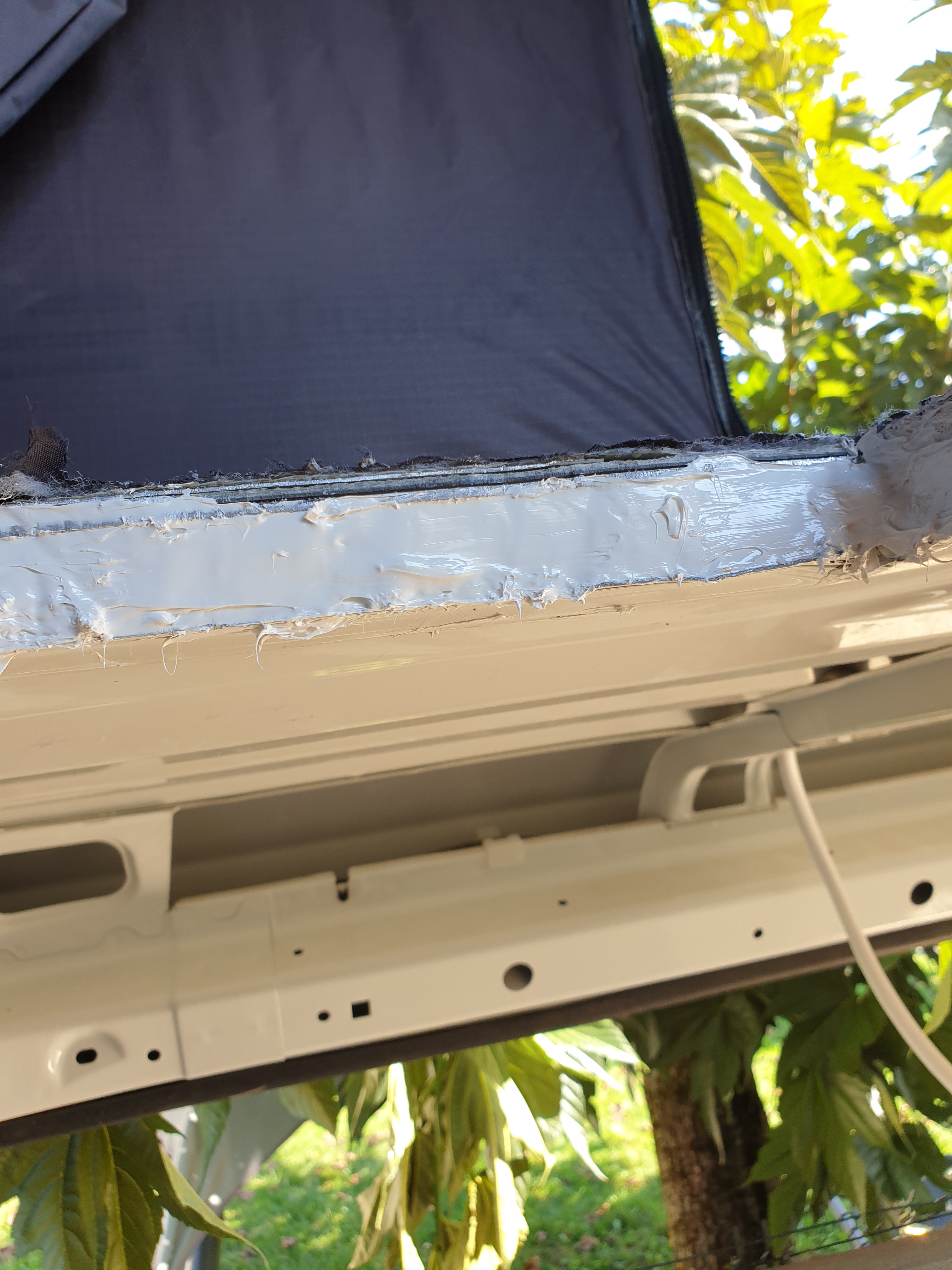 J ai decoupé le toit du B et j ai fait la même decoupe dans la tente de toit. Ensuite la tente de toit est directement boulonnée dans le toit via des patins caoutchouc. L étanchéité est faite entre le toit et la tente de toit avec de la fibre polyester. Aucun pb de ce côté