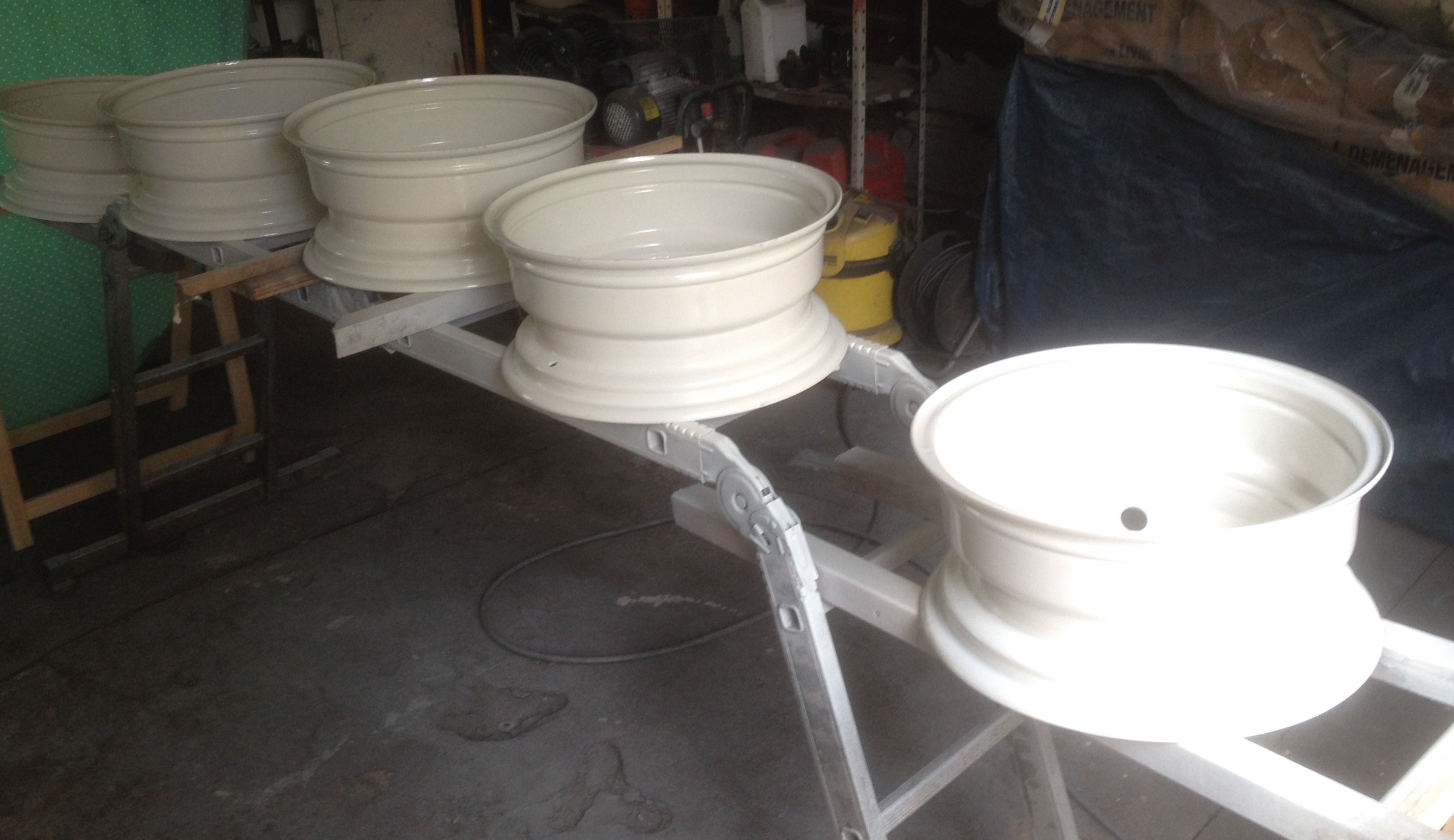 Il a fait venir de chez Péré Maimi des jantes en 7" spécialement fabriquée pour moi , elles sont réversibles , eh oui, mais jantes avant sont à l'envers des jantes arrières