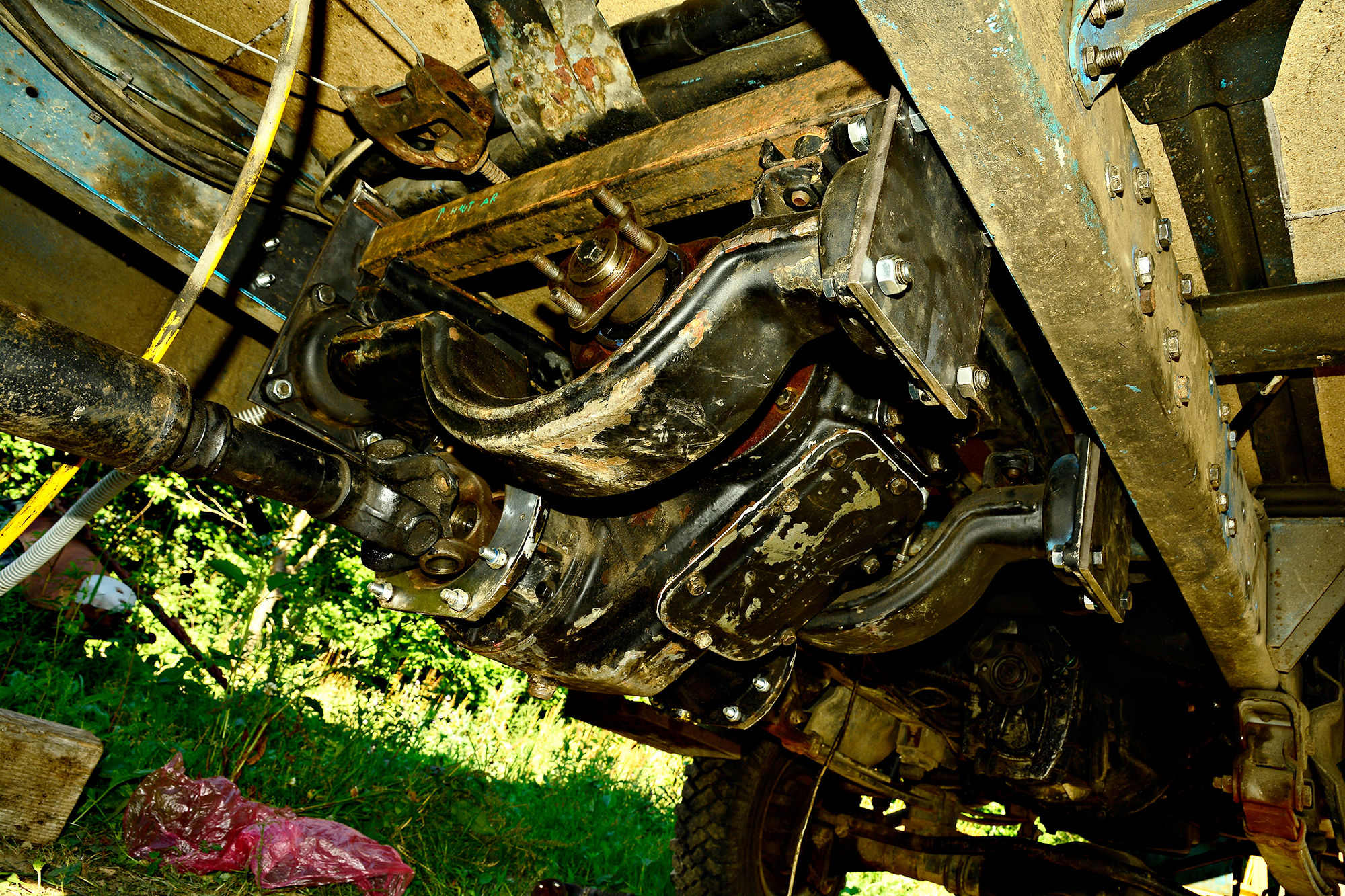 ça y est elle est en place ... reste plus qu'a raccorder les arbres de transmission, faire des levier pour les gammes petites/grandes vitesse ainsi que le crabotage du pont ... et voila ...