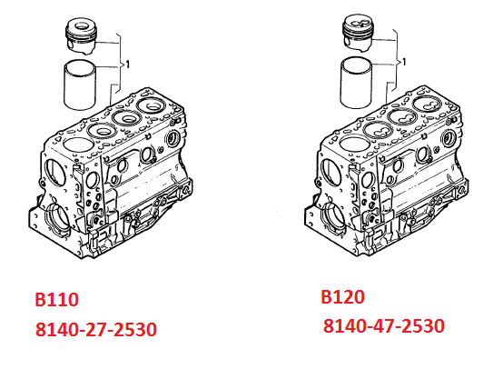 les pistons sont identiques entre les B110 et B120 en 2.5l de cylindré, de même qu'ils sont identiques entre les b110 et b120 en 2.8l de cylindré.